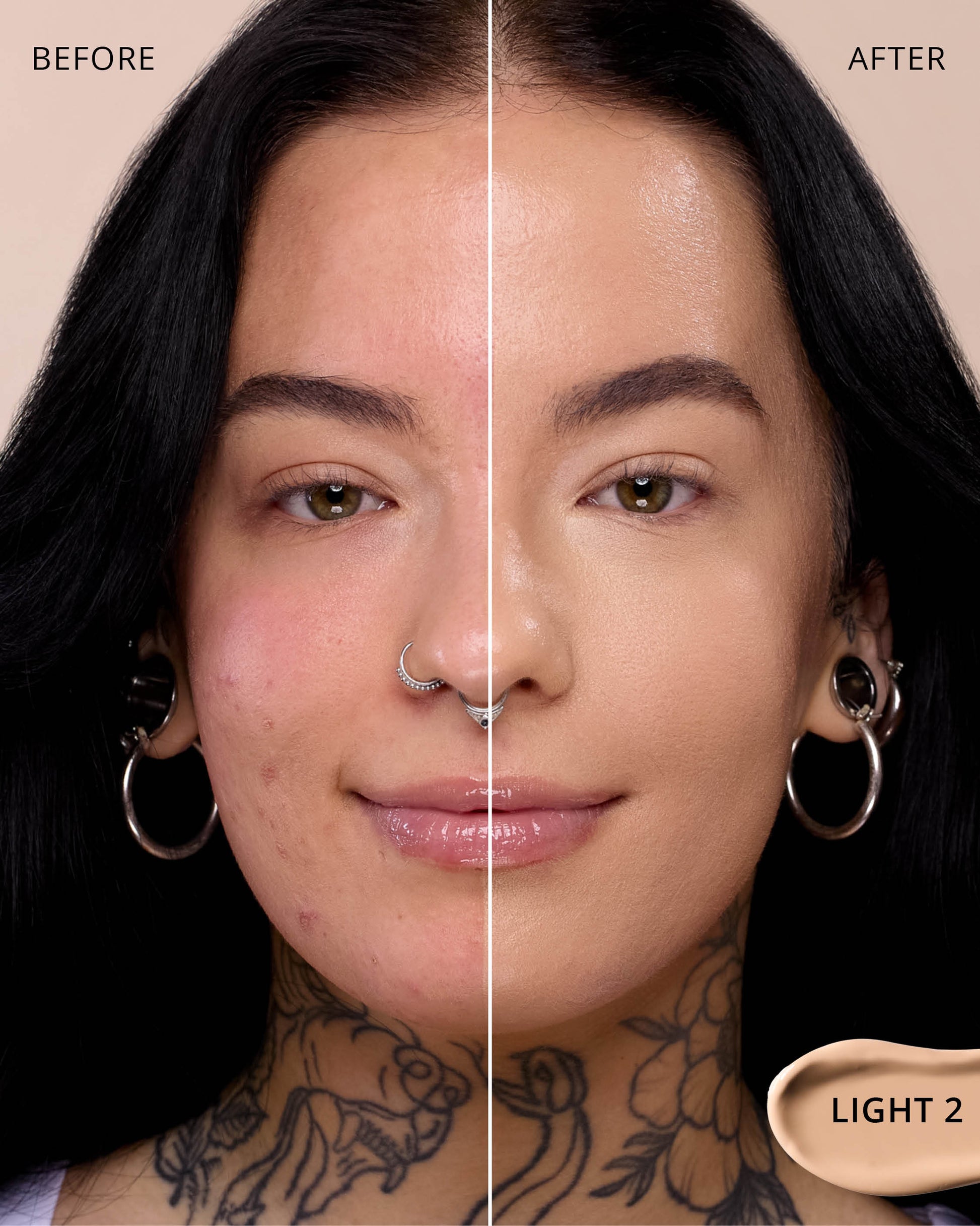 Light 2 : Water, Titanium Dioxide (CI 77891), Cyclopentasiloxane, Glycerin, Iron Oxides (CI 77492), Phenyl Trimethicone, Hydrogenated Polyisobutene, Mica (CI 77019), Cetyl PEG/PPG-10/1 Dimethicone, Butylene Glycol, Trimethylsiloxysilicate, Dimethicone, 1,2-Hexanediol, Lauryl PEG-10 Tris(Trimethylsiloxy)silylethyl, Dimethicone, Disteardimonium Hectorite, Lactobacillus Ferment, Iron Oxides (CI 77491), Magnesium Sulfate, Aluminum Hydroxide, Triethoxycaprylylsilane, Iron Oxides (CI 77499), Glyceryl Caprylate, Propylene Carbonate, Lauryl Polyglyceryl-3 Polydimethylsiloxyethyl, Dimethicone, Disodium Stearoyl Glutamate, Diphenylsiloxy Phenyl Trimethicone, Chenopodium Quinoa Seed Extract, Trisodium Ethylenediamine Disuccinate, Polyglyceryl-3 Polydimethylsiloxyethyl, Dimethicone, Caffeine, Polyhydroxystearic Acid, Neopentyl Glycol Diethylhexanoate, Ethylhexylglycerin, Pentaerythrityl Tetra-di-t-butyl Hydroxyhydrocinnamate, Tocopherol