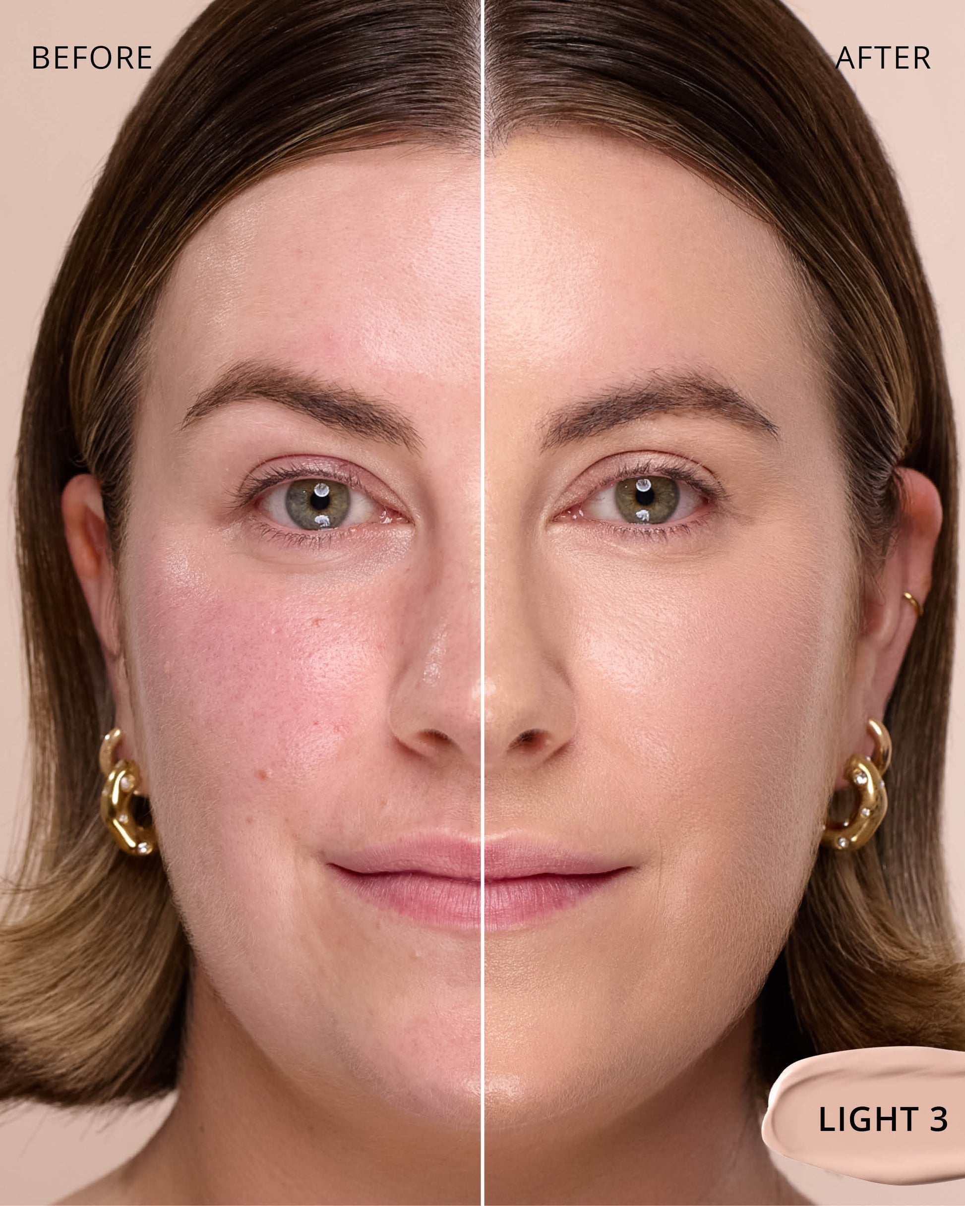 Light 3 : Water, Titanium Dioxide (CI 77891), Cyclopentasiloxane, Glycerin, Phenyl Trimethicone, Hydrogenated Polyisobutene, Mica (CI 77019), Cetyl PEG/PPG-10/1 Dimethicone, Iron Oxides (CI 77492), Butylene Glycol, Trimethylsiloxysilicate, Dimethicone, 1,2-Hexanediol, Lauryl PEG-10 Tris(Trimethylsiloxy)silylethyl, Dimethicone, Disteardimonium Hectorite, Lactobacillus Ferment, Iron Oxides (CI 77491), Magnesium Sulfate, Aluminum Hydroxide, Triethoxycaprylylsilane, Glyceryl Caprylate, Propylene Carbonate, Iron Oxides (CI 77499), Diphenylsiloxy Phenyl Trimethicone, Lauryl Polyglyceryl-3 Polydimethylsiloxyethyl, Dimethicone, Disodium Stearoyl Glutamate, Chenopodium Quinoa Seed Extract, Trisodium Ethylenediamine Disuccinate, Caffeine, Polyhydroxystearic Acid, Polyglyceryl-3 Polydimethylsiloxyethyl, Dimethicone, Ethylhexylglycerin, Neopentyl Glycol Diethylhexanoate, Pentaerythrityl Tetra-di-t-butyl, Hydroxyhydrocinnamate, Tocopherol