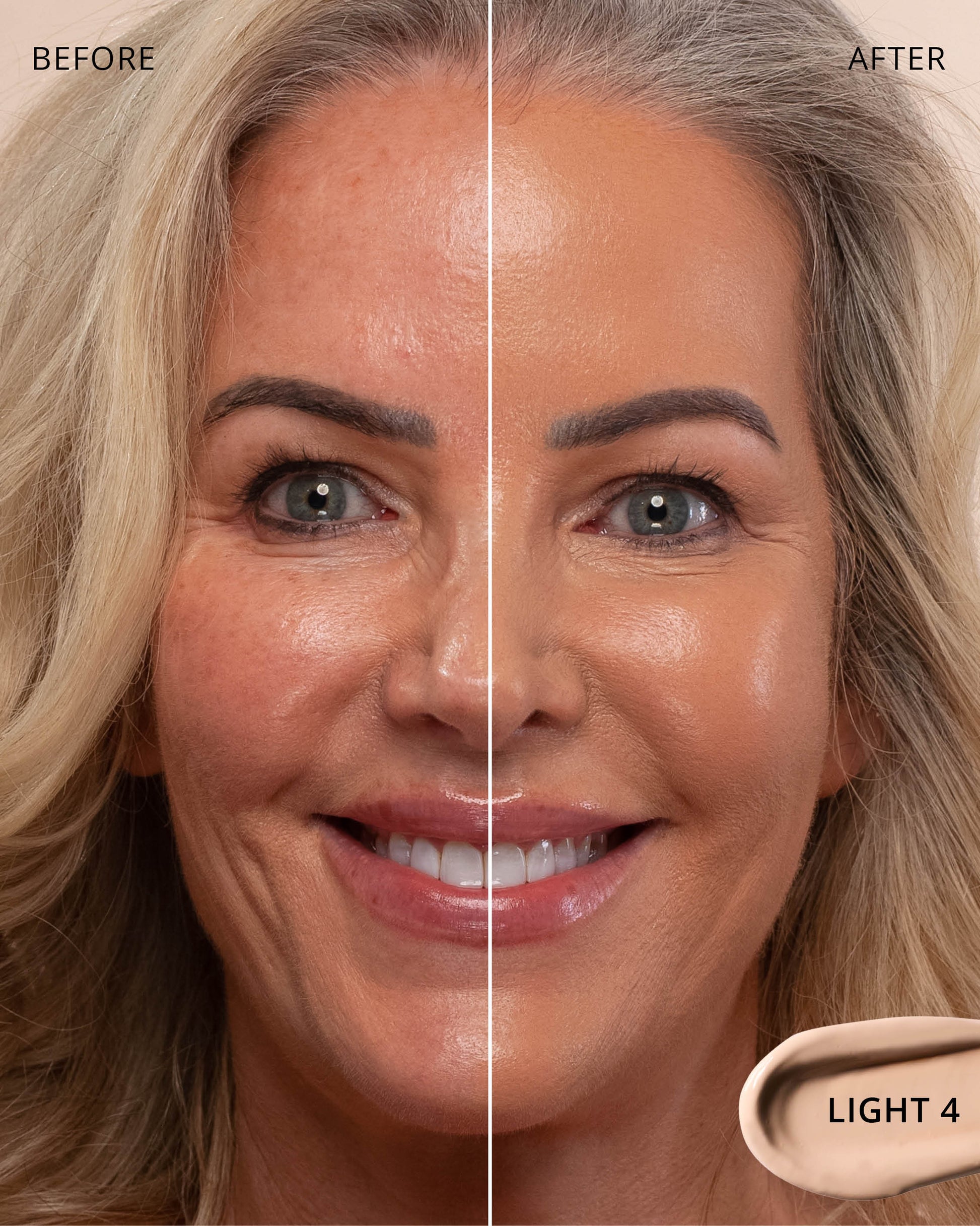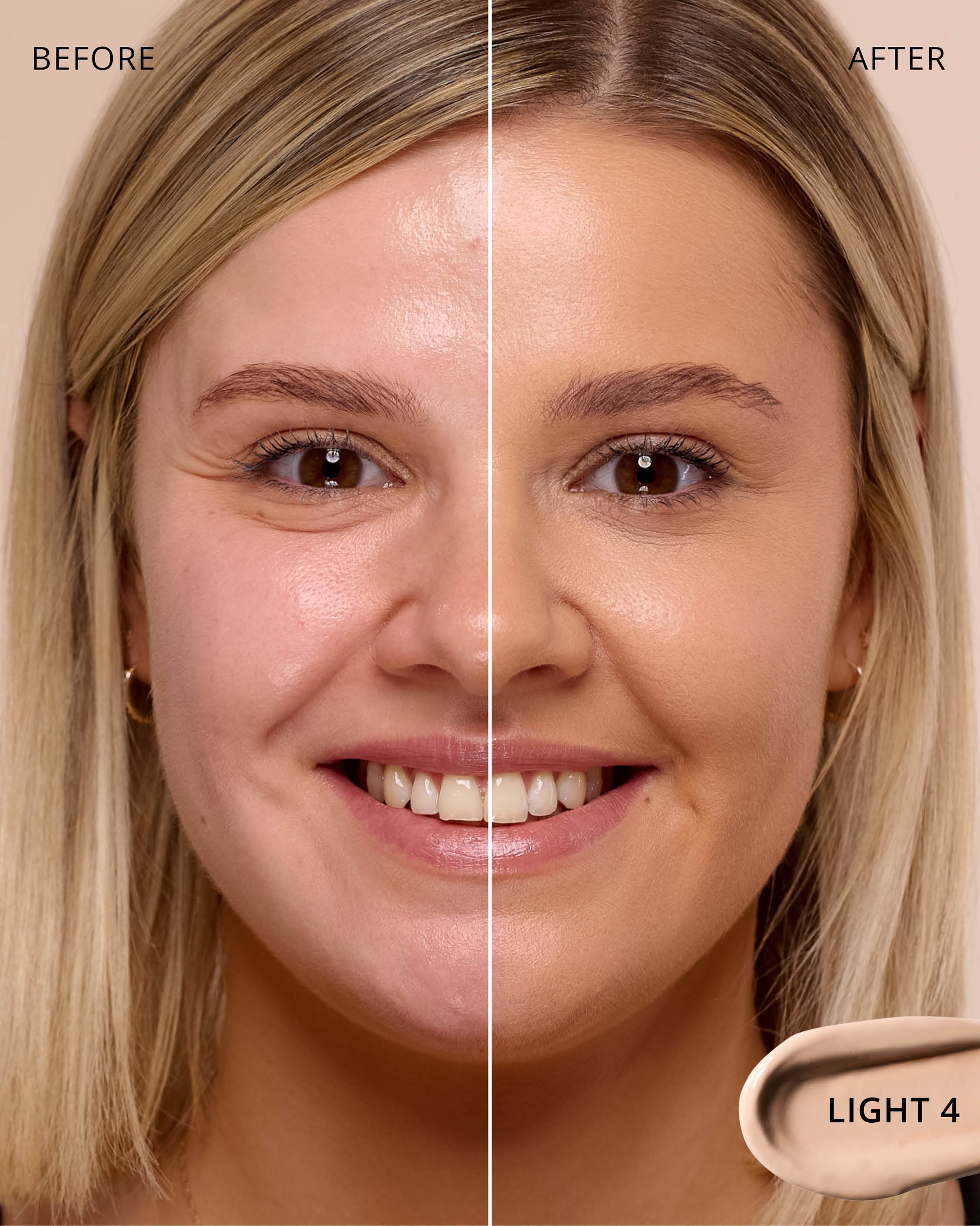 Light 4 : Water, Titanium Dioxide (CI 77891), Cyclopentasiloxane, Glycerin, Phenyl Trimethicone, Mica (CI 77019), Hydrogenated Polyisobutene, Iron Oxides (CI 77492), Cetyl PEG/PPG-10/1 Dimethicone, Butylene Glycol, Trimethylsiloxysilicate, Dimethicone, 1,2-Hexanediol, Lauryl PEG-10 Tris(Trimethylsiloxy)silylethyl, Dimethicone, Disteardimonium Hectorite, Lactobacillus Ferment, Iron Oxides (CI 77491), Magnesium Sulfate, Aluminum Hydroxide, Triethoxycaprylylsilane, Iron Oxides (CI 77499), Glyceryl Caprylate, Propylene Carbonate, Polyglyceryl-3 Polydimethylsiloxyethyl, Dimethicone, Diphenylsiloxy Phenyl Trimethicone, Lauryl Polyglyceryl-3 Polydimethylsiloxyethyl, Dimethicone, Chenopodium Quinoa Seed Extract, Trisodium Ethylenediamine Disuccinate, Disodium Stearoyl Glutamate, Polyhydroxystearic Acid, Caffeine, Neopentyl Glycol Diethylhexanoate, Ethylhexylglycerin, Pentaerythrityl Tetra-di-t-butyl, Hydroxyhydrocinnamate, Tocopherol