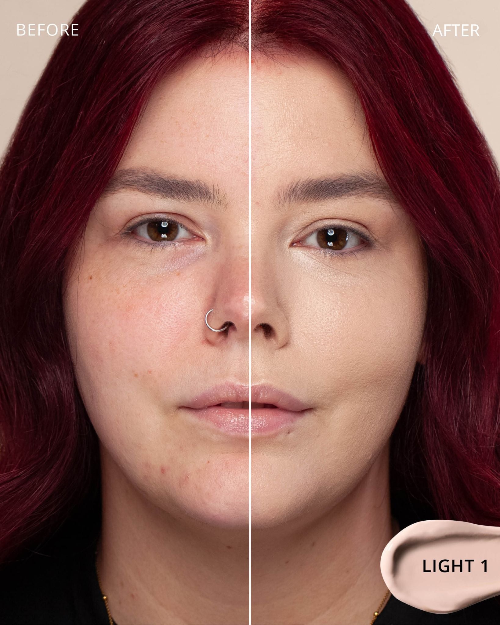 Light 1 : Water, Titanium Dioxide (CI 77891), Cyclopentasiloxane, Glycerin, Phenyl Trimethicone, Hydrogenated Polyisobutene, Mica (CI 77019), Cetyl PEG/PPG-10/1 Dimethicone, Butylene Glycol, Trimethylsiloxysilicate, Iron Oxides (CI 77492), Dimethicone, 1,2-Hexanediol, Lauryl PEG-10 Tris(Trimethylsiloxy)silylethyl, Dimethicone, Disteardimonium Hectorite, Lactobacillus Ferment, Magnesium Sulfate, Iron Oxides (CI 77491), Aluminum Hydroxide, Triethoxycaprylylsilane, Iron Oxides (CI 77499), Glyceryl Caprylate, Propylene Carbonate, Diphenylsiloxy Phenyl Trimethicone, Lauryl Polyglyceryl-3 Polydimethylsiloxyethyl, Dimethicone, Chenopodium Quinoa Seed Extract, Polyglyceryl-3 Polydimethylsiloxyethyl, Dimethicone, Trisodium Ethylenediamine Disuccinate, Disodium Stearoyl Glutamate, Polyhydroxystearic Acid, Caffeine, Neopentyl Glycol Diethylhexanoate, Ethylhexylglycerin, Pentaerythrityl Tetra-di-t-butyl, Hydroxyhydrocinnamate, Tocopherol