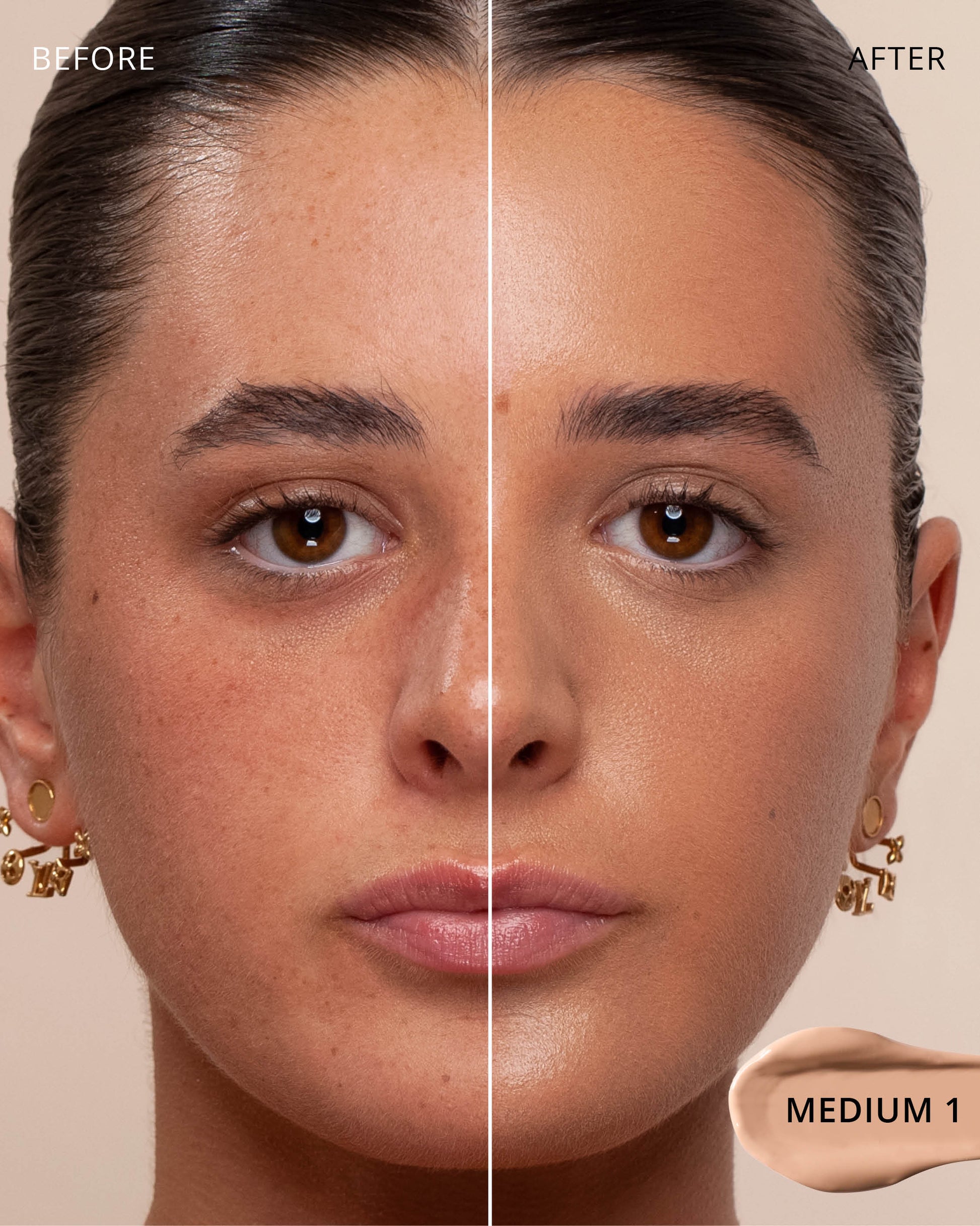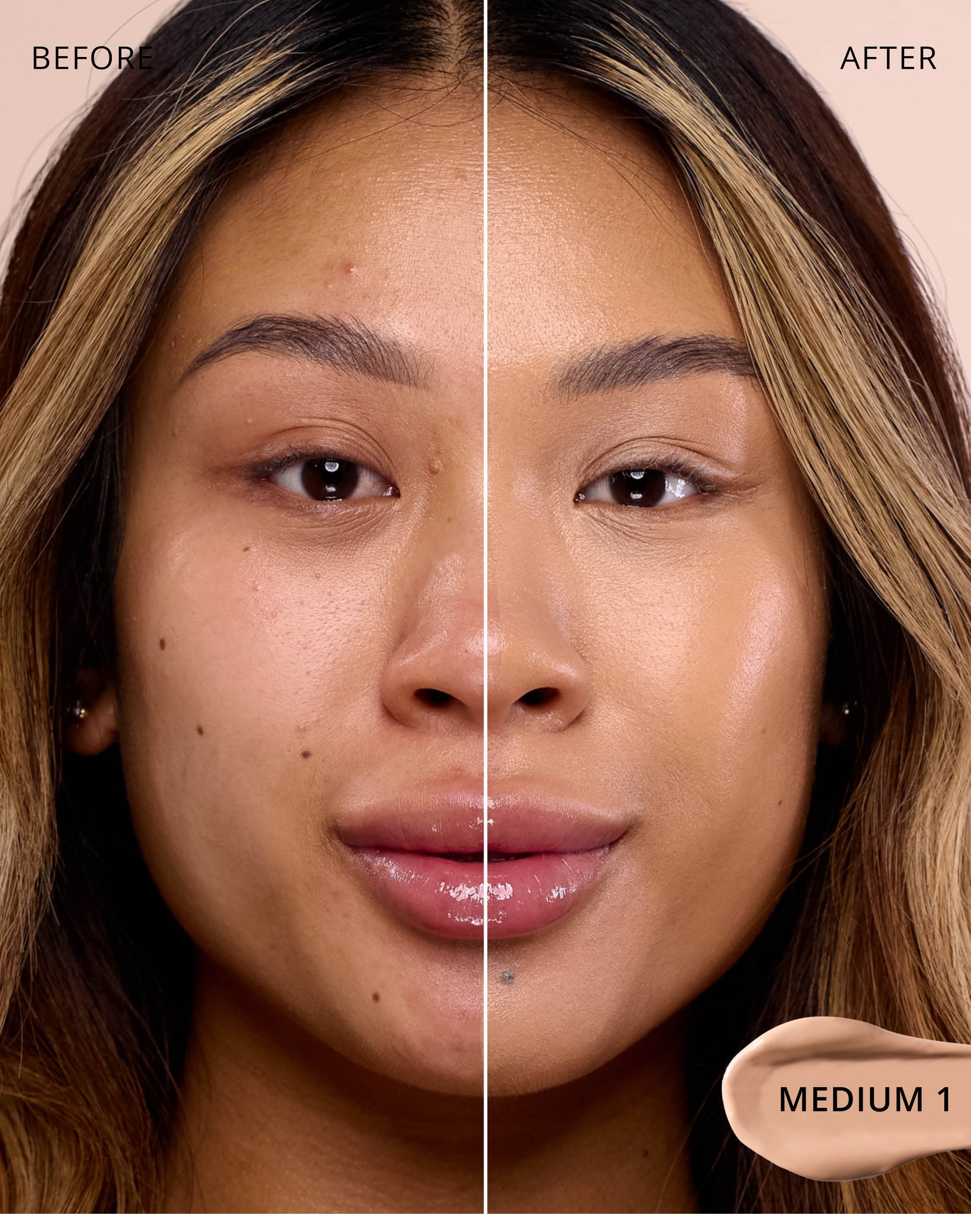 Medium 1 : Water, Titanium Dioxide (CI 77891), Cyclopentasiloxane, Glycerin, Iron Oxides (CI 77492), Phenyl Trimethicone, Mica (CI 77019), Hydrogenated Polyisobutene, Cetyl PEG/PPG-10/1 Dimethicone, Butylene Glycol, Trimethylsiloxysilicate, Dimethicone, Iron Oxides (CI 77491), 1,2-Hexanediol, Lauryl PEG-10 Tris(Trimethylsiloxy)silylethyl, Dimethicone, Disteardimonium Hectorite, Lactobacillus Ferment, Magnesium Sulfate, Triethoxycaprylylsilane, Aluminum Hydroxide, Iron Oxides (CI 77499), Glyceryl Caprylate, Propylene Carbonate, Polyglyceryl-3 Polydimethylsiloxyethyl, Dimethicone, Diphenylsiloxy Phenyl Trimethicone, Chenopodium Quinoa Seed Extract, Trisodium Ethylenediamine Disuccinate, Polyhydroxystearic Acid, Lauryl Polyglyceryl-3 Polydimethylsiloxyethyl, Dimethicone, Caffeine, Disodium Stearoyl Glutamate, Neopentyl Glycol Diethylhexanoate, Ethylhexylglycerin, Pentaerythrityl Tetra-di-t-butyl, Hydroxyhydrocinnamate, Tocopherol