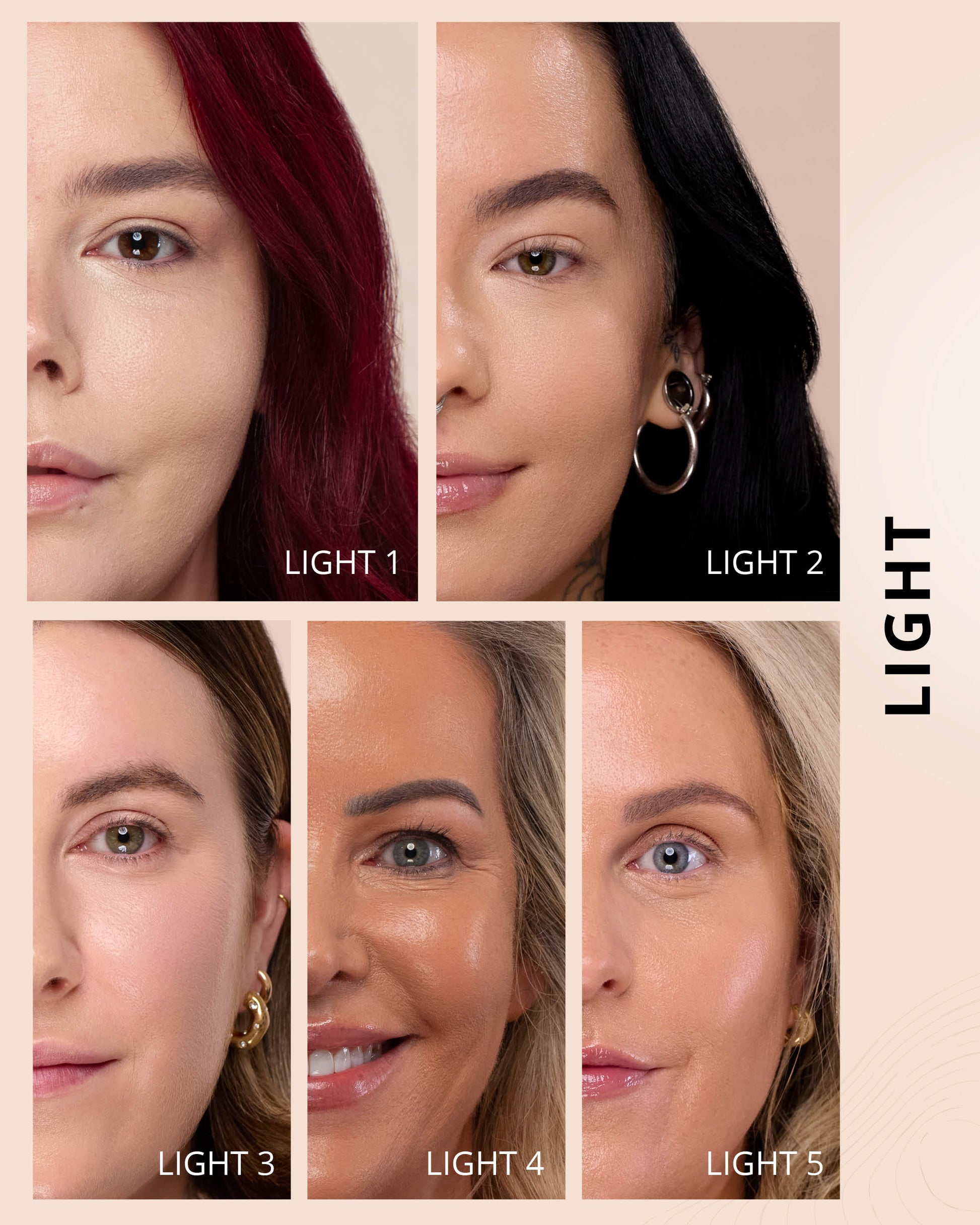 Light 5 : Water, Titanium Dioxide (CI 77891), Cyclopentasiloxane, Glycerin, Iron Oxides (CI 77492), Phenyl Trimethicone, Mica (CI 77019), Hydrogenated Polyisobutene, Cetyl PEG/PPG-10/1 Dimethicone, Butylene Glycol, Trimethylsiloxysilicate, Dimethicone, Iron Oxides (CI 77491), 1,2-Hexanediol, Lauryl PEG-10 Tris(Trimethylsiloxy)silylethyl, Dimethicone, Disteardimonium Hectorite, Lactobacillus Ferment, Magnesium Sulfate, Triethoxycaprylylsilane, Aluminum Hydroxide, Iron Oxides (CI 77499), Glyceryl Caprylate, Propylene Carbonate, Polyglyceryl-3 Polydimethylsiloxyethyl, Dimethicone, Chenopodium Quinoa Seed Extract, Trisodium Ethylenediamine Disuccinate, Lauryl Polyglyceryl-3 Polydimethylsiloxyethyl, Dimethicone, Diphenylsiloxy Phenyl Trimethicone, Polyhydroxystearic Acid, Disodium Stearoyl Glutamate, Caffeine, Neopentyl Glycol Diethylhexanoate, Ethylhexylglycerin, Pentaerythrityl Tetra-di-t-butyl, Hydroxyhydrocinnamate, Tocopherol