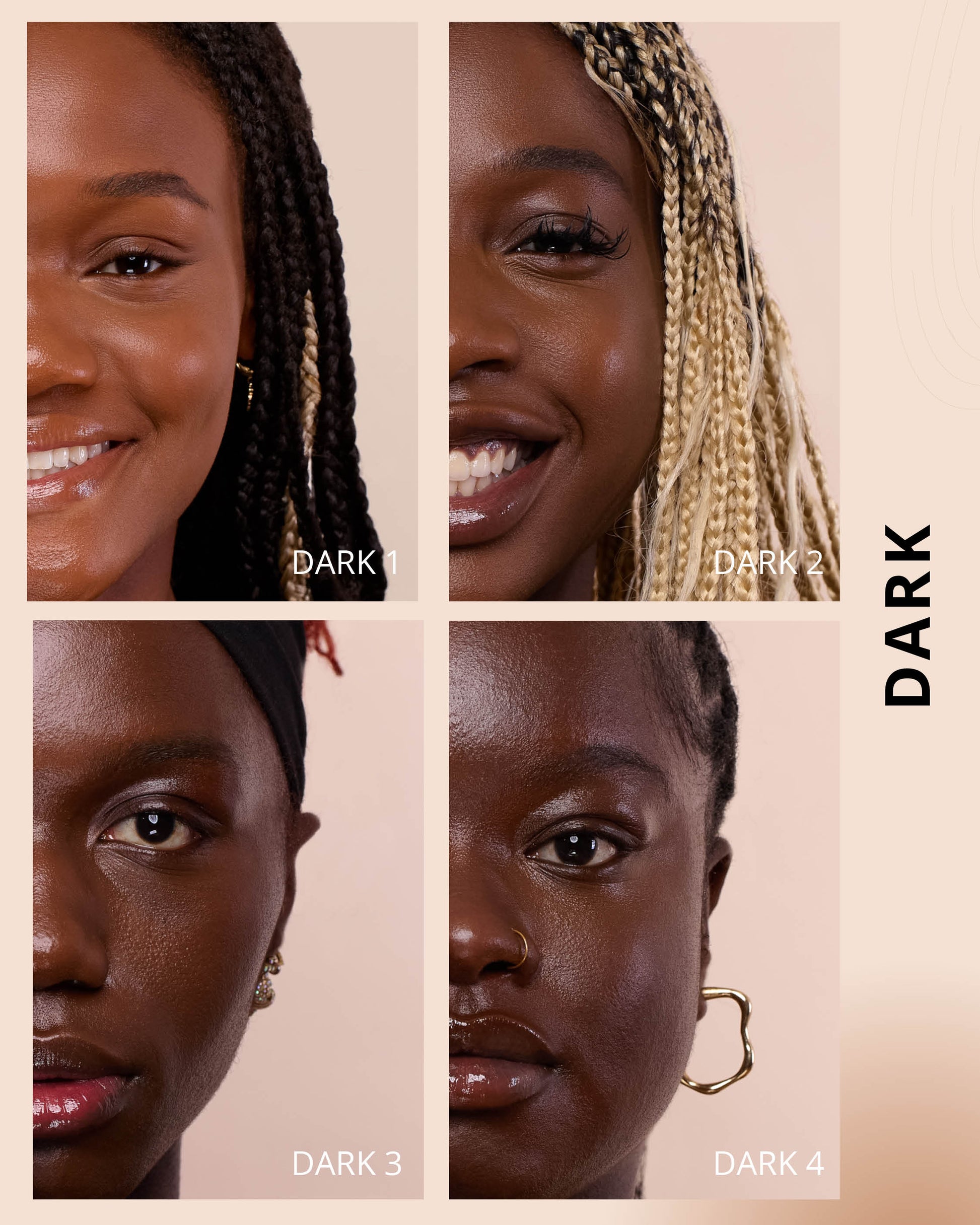 Dark 4 : Water, Cyclopentasiloxane, Iron Oxides (CI 77499), Iron Oxides (CI 77491), Glycerin, Iron Oxides (CI 77492), Phenyl Trimethicone, Hydrogenated Polyisobutene, Mica (CI 77019), Cetyl PEG/PPG-10/1 Dimethicone, Butylene Glycol, Trimethylsiloxysilicate, 1,2-Hexanediol, Dimethicone, Lauryl PEG-10 Tris(Trimethylsiloxy)silylethyl, Dimethicone, Disteardimonium Hectorite, Lactobacillus Ferment, Magnesium Sulfate, Triethoxycaprylylsilane, Glyceryl Caprylate, Propylene Carbonate, Titanium Dioxide (CI 77891), Diphenylsiloxy Phenyl Trimethicone, Lauryl Polyglyceryl-3 Polydimethylsiloxyethyl, Dimethicone, Chenopodium Quinoa Seed Extract, Trisodium Ethylenediamine Disuccinate, Disodium Stearoyl Glutamate, Caffeine, Polyhydroxystearic Acid, Aluminum Hydroxide, Ethylhexylglycerin, Polyglyceryl-3 Polydimethylsiloxyethyl, Dimethicone, Pentaerythrityl Tetra-di-t-butyl, Hydroxyhydrocinnamate, Tocopherol, Neopentyl Glycol Diethylhexanoate