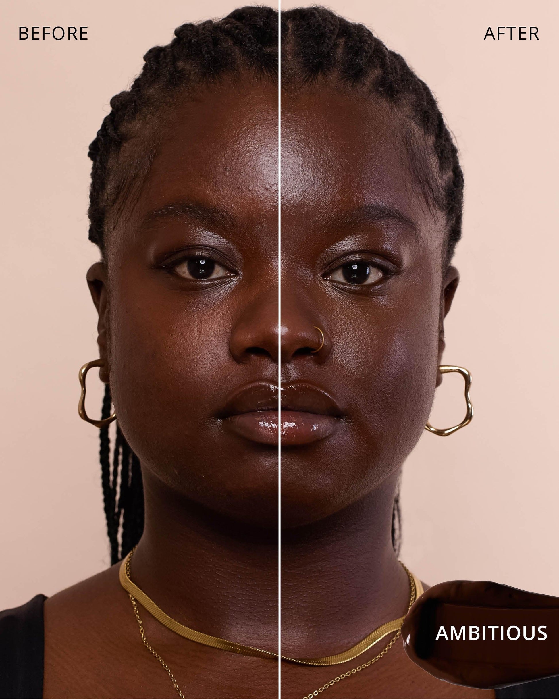 Ambitious : Water, Dimethicone, Iron Oxides (CI 77499), Butylene Glycol Dicaprylate/Dicaprate, Diphenylsiloxy Phenyl Trimethicone, Iron Oxides (CI 77491), Glycerin, Cetyl PEG/PPG-10/1 Dimethicone, Trisiloxane, Butylene Glycol, Synthetic Fluorphlogopite, Iron Oxides (CI 77492), 1,2-Hexanediol, Trimethylsiloxysilicate, Disteardimonium Hectorite, PEG-10 Dimethicone, Lactobacillus Ferment, Polyphenylsilsesquioxane, Magnesium Sulfate, Dimethicone Crosspolymer, Triethoxycaprylylsilane, Lauroyl Lysine, Hydrogenated Polyisobutene, Polyhydroxystearic Acid, Lauryl Polyglyceryl-3 Polydimethylsiloxyethyl, Dimethicone, Lecithin, Ethylhexyl Palmitate, Isopropyl Myristate, Isostearic Acid, Chenopodium Quinoa Seed Extract, Trisodium Ethylenediamine Disuccinate, Polyglyceryl-3 Polyricinoleate, Phenyl Trimethicone, Ethylhexylglycerin, Disodium Stearoyl Glutamate, Titanium Dioxide (CI 77891), Aluminum Hydroxide, Polyglyceryl-3 Polydimethylsiloxyethyl, Dimethicone, Neopentyl Glycol Diethylhexanoate