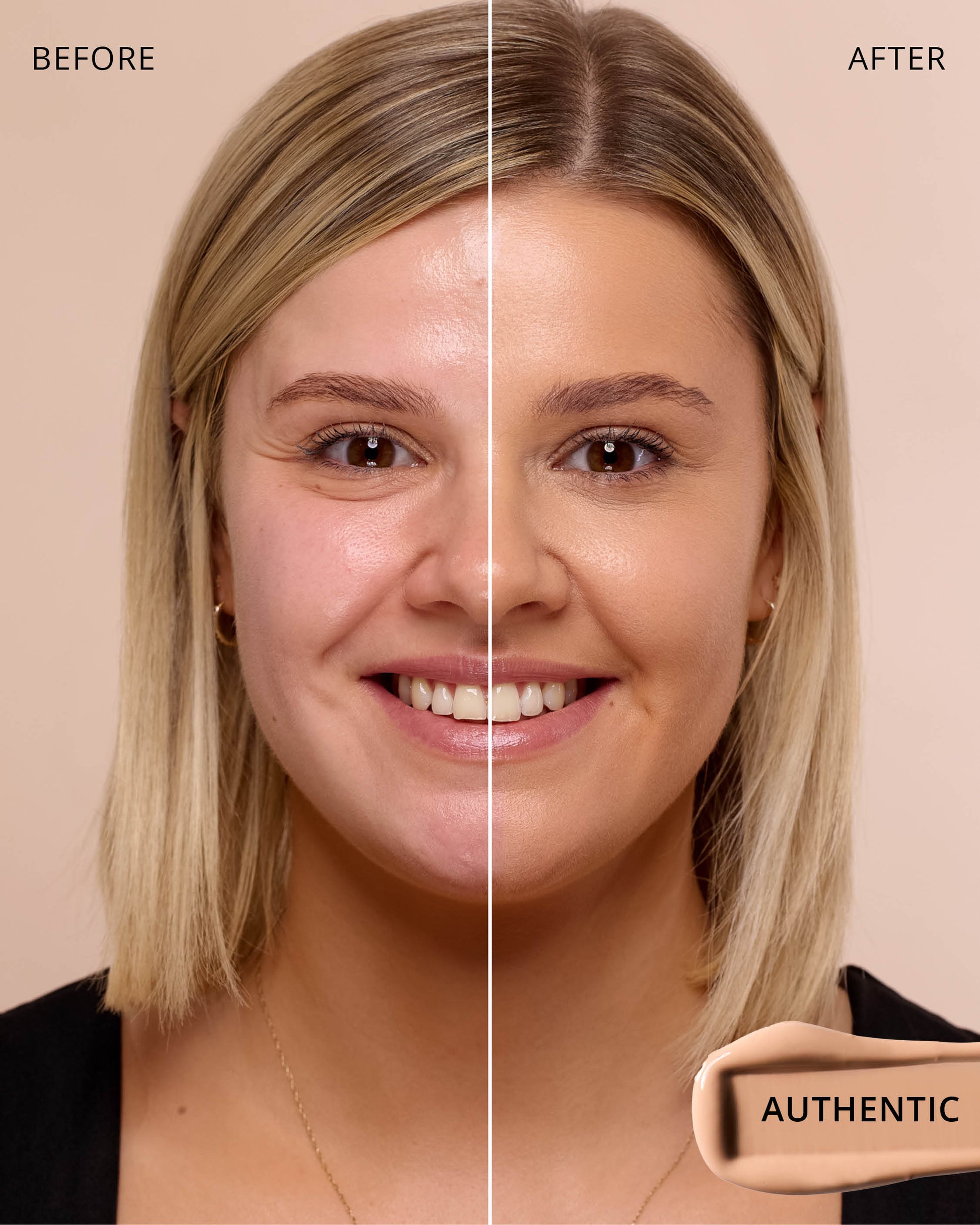 Authentic : Water, Dimethicone, Butylene Glycol Dicaprylate/Dicaprate, Titanium Dioxide (CI 77891), Diphenylsiloxy Phenyl Trimethicone, Glycerin, Synthetic Fluorphlogopite, Cetyl PEG/PPG-10/1 Dimethicone, Iron Oxides (CI 77492), Trisiloxane, Butylene Glycol, 1,2-Hexanediol, Trimethylsiloxysilicate, Disteardimonium Hectorite, PEG-10 Dimethicone, Lactobacillus Ferment, Polyphenylsilsesquioxane, Magnesium Sulfate, Iron Oxides (CI 77491), Dimethicone Crosspolymer, Caprylyl Methicone, Lauroyl Lysine, Triethoxycaprylylsilane, Aluminum Hydroxide, Polyhydroxystearic Acid, Iron Oxides (CI 77499), Lecithin, Ethylhexyl Palmitate, Isopropyl Myristate, Isostearic Acid, Polyglyceryl-3 Polydimethylsiloxyethyl, Dimethicone, Phenyl Trimethicone, Hydrogenated Polyisobutene, Chenopodium Quinoa Seed Extract, Trisodium Ethylenediamine Disuccinate, Polyglyceryl-3 Polyricinoleate, Lauryl Polyglyceryl-3 Polydimethylsiloxyethyl, Dimethicone, Disodium Stearoyl Glutamate, Neopentyl Glycol Diethylhexanoate, Ethylhexylglycerin