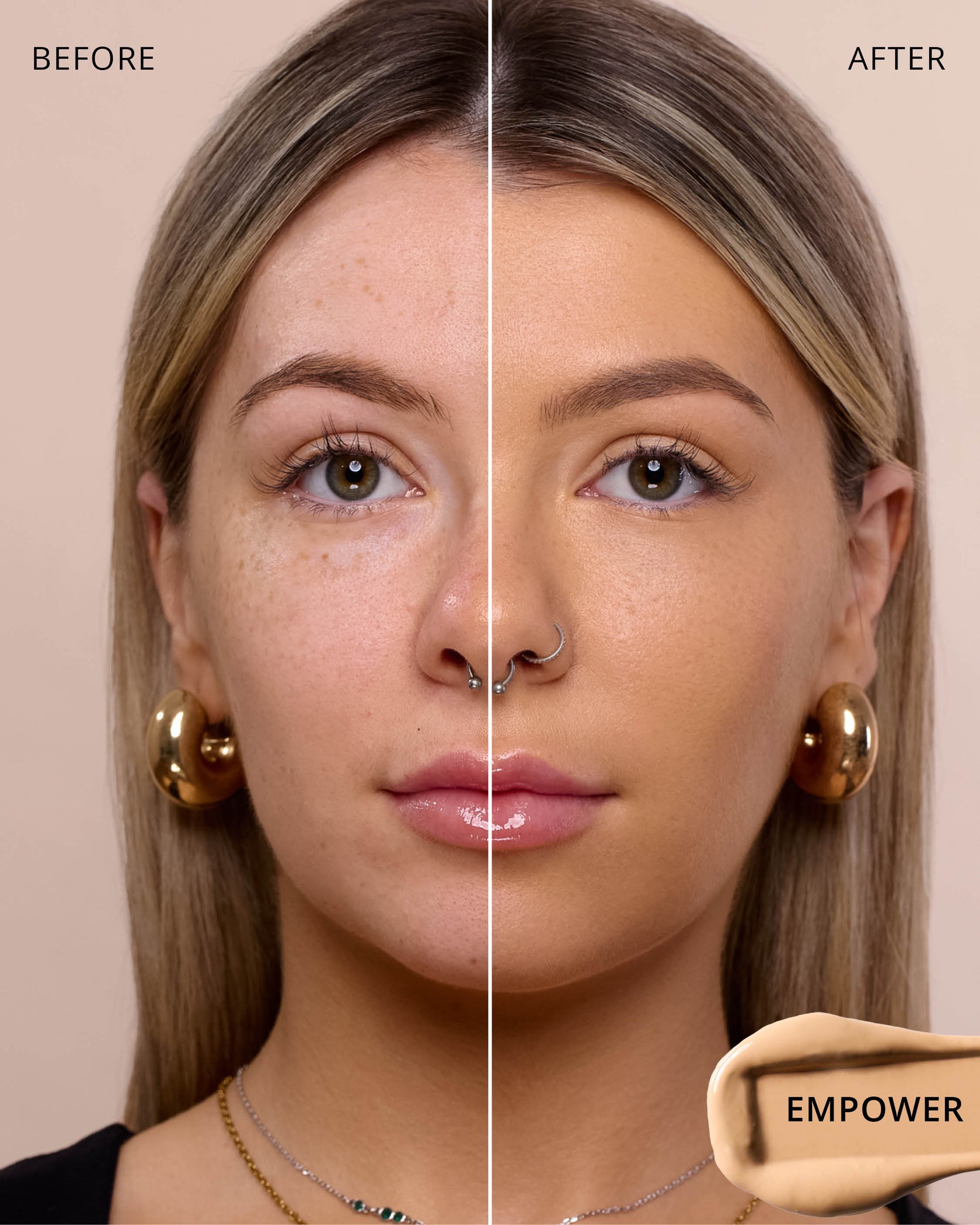 Empower : Water, Dimethicone, Butylene Glycol Dicaprylate/Dicaprate, Titanium Dioxide (CI 77891), Diphenylsiloxy Phenyl Trimethicone, Glycerin, Synthetic Fluorphlogopite, Iron Oxides (CI 77492), Cetyl PEG/PPG-10/1 Dimethicone, Trisiloxane, Butylene Glycol, 1,2-Hexanediol, Trimethylsiloxysilicate, Disteardimonium Hectorite, PEG-10 Dimethicone, Lactobacillus Ferment, Polyphenylsilsesquioxane, Magnesium Sulfate, Dimethicone Crosspolymer, Caprylyl Methicone, Lauroyl Lysine, Iron Oxides (CI 77491), Triethoxycaprylylsilane, Aluminum Hydroxide, Iron Oxides (CI 77499), Phenyl Trimethicone, Polyhydroxystearic Acid, Hydrogenated Polyisobutene, Lecithin, Ethylhexyl Palmitate, Isopropyl Myristate, Isostearic Acid, Lauryl Polyglyceryl-3 Polydimethylsiloxyethyl, Dimethicone, Chenopodium Quinoa Seed Extract, Trisodium Ethylenediamine Disuccinate, Polyglyceryl-3 Polyricinoleate, Disodium Stearoyl Glutamate, Polyglyceryl-3 Polydimethylsiloxyethyl, Dimethicone, Neopentyl Glycol Diethylhexanoate, Ethylhexylglycerin