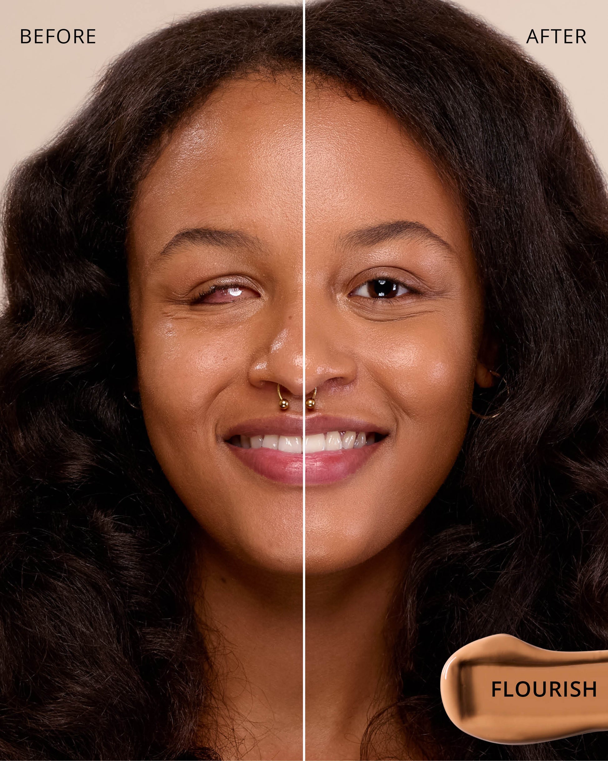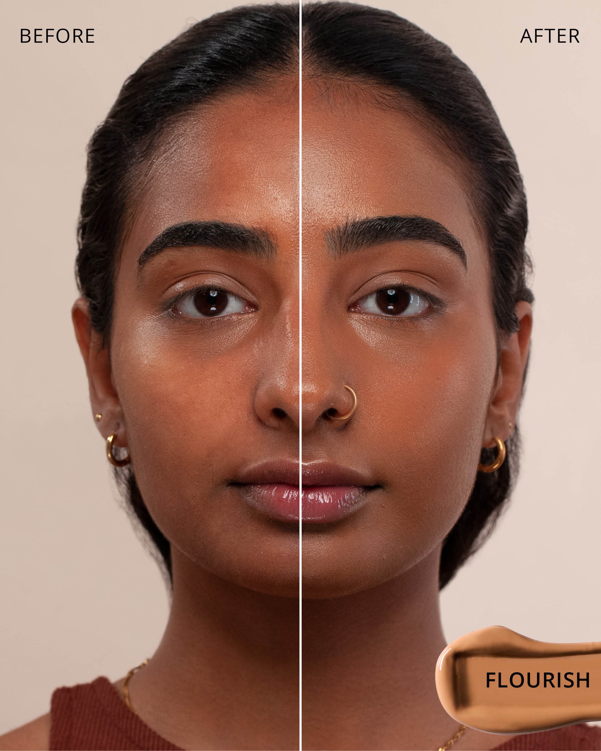 Flourish : Water, Dimethicone, Butylene Glycol Dicaprylate/Dicaprate, Diphenylsiloxy Phenyl Trimethicone, Iron Oxides (CI 77492), Titanium Dioxide (CI 77891), Glycerin, Cetyl PEG/PPG-10/1 Dimethicone, Trisiloxane, Synthetic Fluorphlogopite, Butylene Glycol, Iron Oxides (CI 77491), 1,2-Hexanediol, Trimethylsiloxysilicate, Disteardimonium Hectorite, PEG-10 Dimethicone, Lactobacillus Ferment, Polyphenylsilsesquioxane, Iron Oxides (CI 77499), Magnesium Sulfate, Dimethicone Crosspolymer, Caprylyl Methicone, Lauroyl Lysine, Triethoxycaprylylsilane, Polyhydroxystearic Acid, Aluminum Hydroxide, Phenyl Trimethicone, Hydrogenated Polyisobutene, Lecithin, Polyglyceryl-3 Polydimethylsiloxyethyl, Dimethicone, Ethylhexyl Palmitate, Isopropyl Myristate, Isostearic Acid, Chenopodium Quinoa Seed Extract, Trisodium Ethylenediamine Disuccinate, Lauryl Polyglyceryl-3 Polydimethylsiloxyethyl, Dimethicone, Polyglyceryl-3 Polyricinoleate, Disodium Stearoyl Glutamate, Neopentyl Glycol Diethylhexanoate, Ethylhexylglycerin