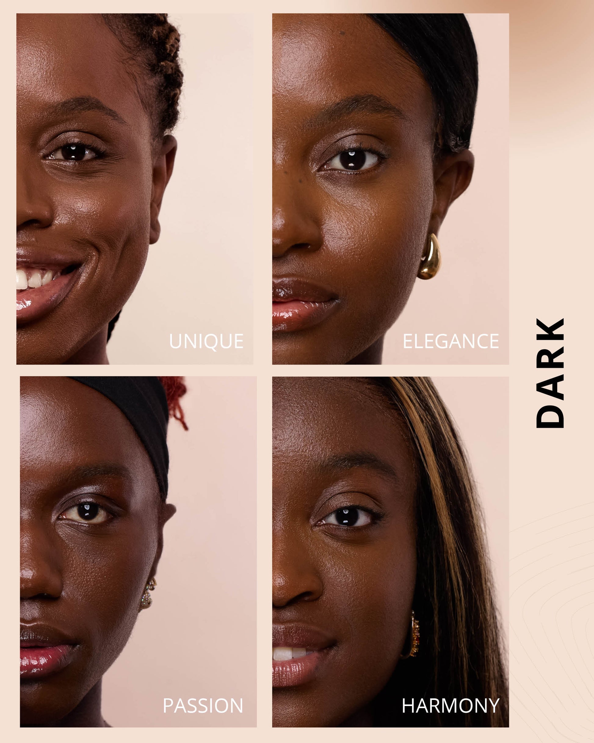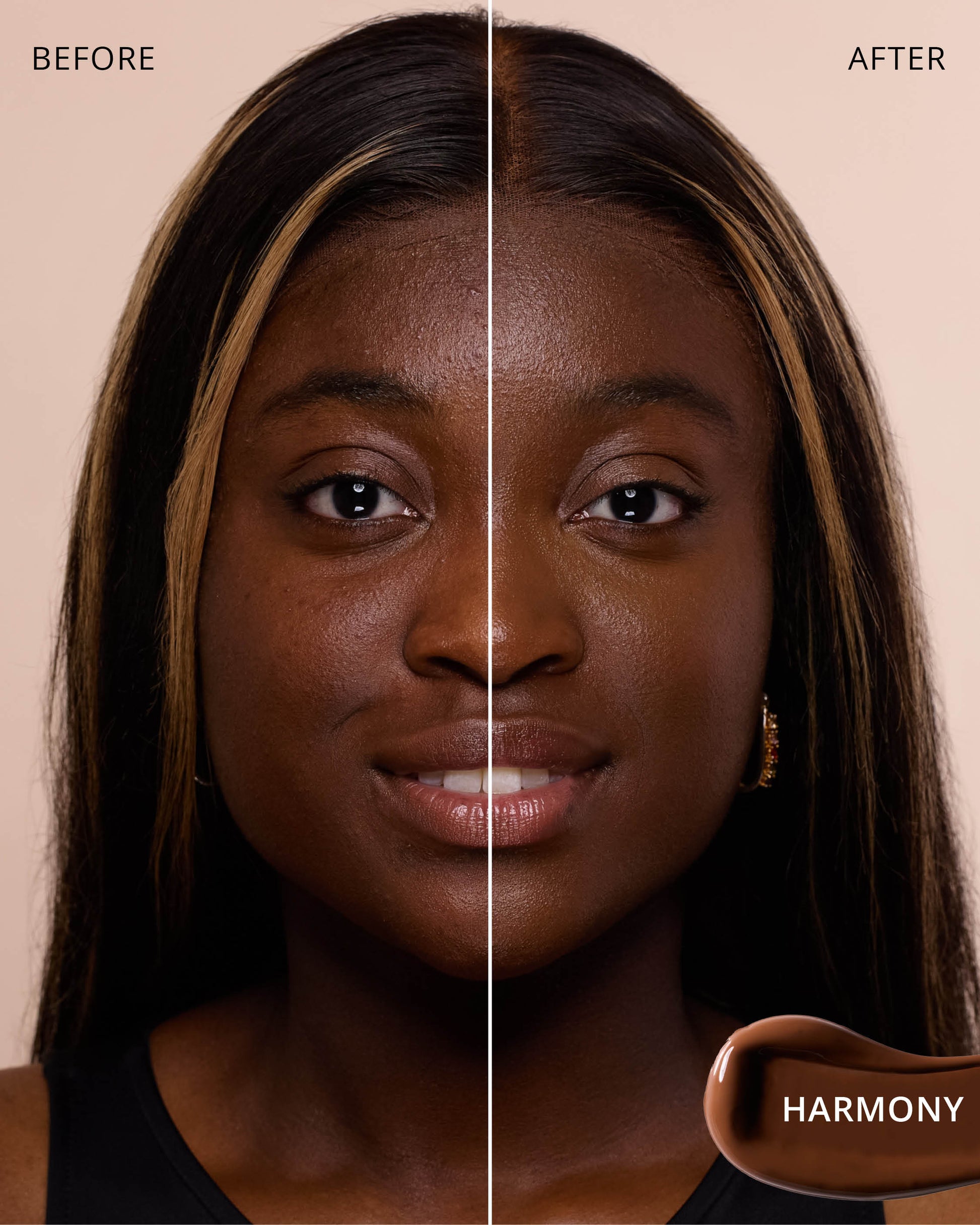 Harmony : Water, Dimethicone, Butylene Glycol Dicaprylate/Dicaprate, Diphenylsiloxy Phenyl Trimethicone, Iron Oxides (CI 77492), Glycerin, Iron Oxides (CI 77491), Iron Oxides (CI 77499), Cetyl PEG/PPG-10/1 Dimethicone, Trisiloxane, Butylene Glycol, Synthetic Fluorphlogopite, 1,2-Hexanediol, Trimethylsiloxysilicate, Caprylyl Methicone, Disteardimonium Hectorite, PEG-10 Dimethicone, Lactobacillus Ferment, Polyphenylsilsesquioxane, Magnesium Sulfate, Dimethicone Crosspolymer, Titanium Dioxide (CI 77891), Lauroyl Lysine, Triethoxycaprylylsilane, Polyhydroxystearic Acid, Hydrogenated Polyisobutene, Phenyl Trimethicone, Lecithin, Ethylhexyl Palmitate, Isopropyl Myristate, Isostearic Acid, Lauryl Polyglyceryl-3 Polydimethylsiloxyethyl, Dimethicone, Chenopodium Quinoa Seed Extract, Trisodium Ethylenediamine Disuccinate, Polyglyceryl-3 Polyricinoleate, Aluminum Hydroxide, Polyglyceryl-3 Polydimethylsiloxyethyl, Dimethicone, Disodium Stearoyl Glutamate, Neopentyl Glycol Diethylhexanoate, Ethylhexylglycerin