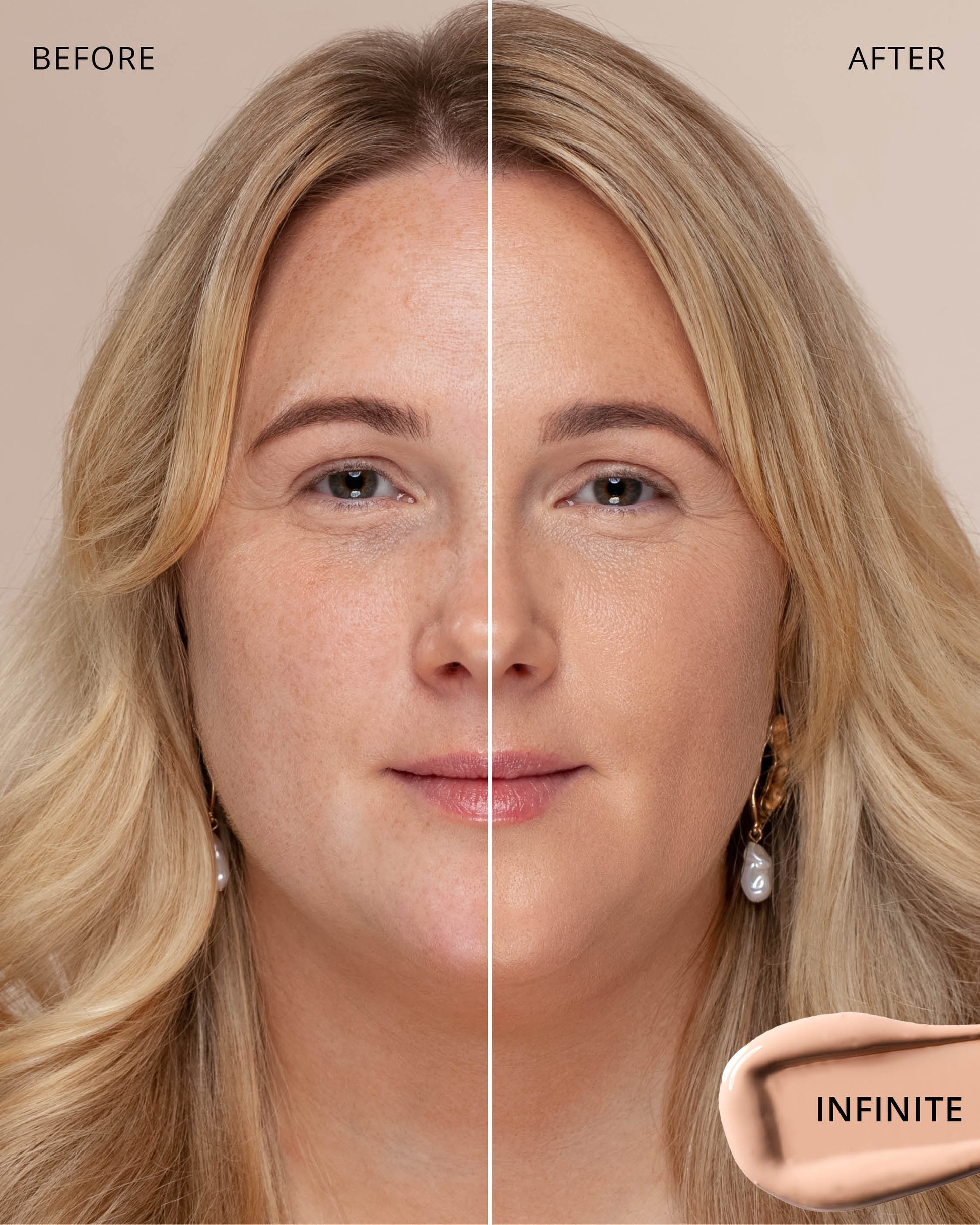 Infinite : Water, Dimethicone, Butylene Glycol Dicaprylate/Dicaprate, Titanium Dioxide (CI 77891), Diphenylsiloxy Phenyl Trimethicone, Glycerin, Synthetic Fluorphlogopite, Cetyl PEG/PPG-10/1 Dimethicone, Trisiloxane, Butylene Glycol, Iron Oxides (CI 77492), 1,2-Hexanediol, Trimethylsiloxysilicate, Disteardimonium Hectorite, PEG-10 Dimethicone, Lactobacillus Ferment, Polyphenylsilsesquioxane, Magnesium Sulfate, Dimethicone Crosspolymer, Iron Oxides (CI 77491), Caprylyl Methicone, Lauroyl Lysine, Triethoxycaprylylsilane, Aluminum Hydroxide, Iron Oxides (CI 77499), Polyhydroxystearic Acid, Phenyl Trimethicone, Lecithin, Hydrogenated Polyisobutene, Polyglyceryl-3 Polydimethylsiloxyethyl, Dimethicone, Ethylhexyl Palmitate, Isopropyl Myristate, Isostearic Acid, Chenopodium Quinoa Seed Extract, Trisodium Ethylenediamine Disuccinate, Polyglyceryl-3 Polyricinoleate, Lauryl Polyglyceryl-3 Polydimethylsiloxyethyl, Dimethicone, Disodium Stearoyl Glutamate, Neopentyl Glycol Diethylhexanoate, Ethylhexylglycerin