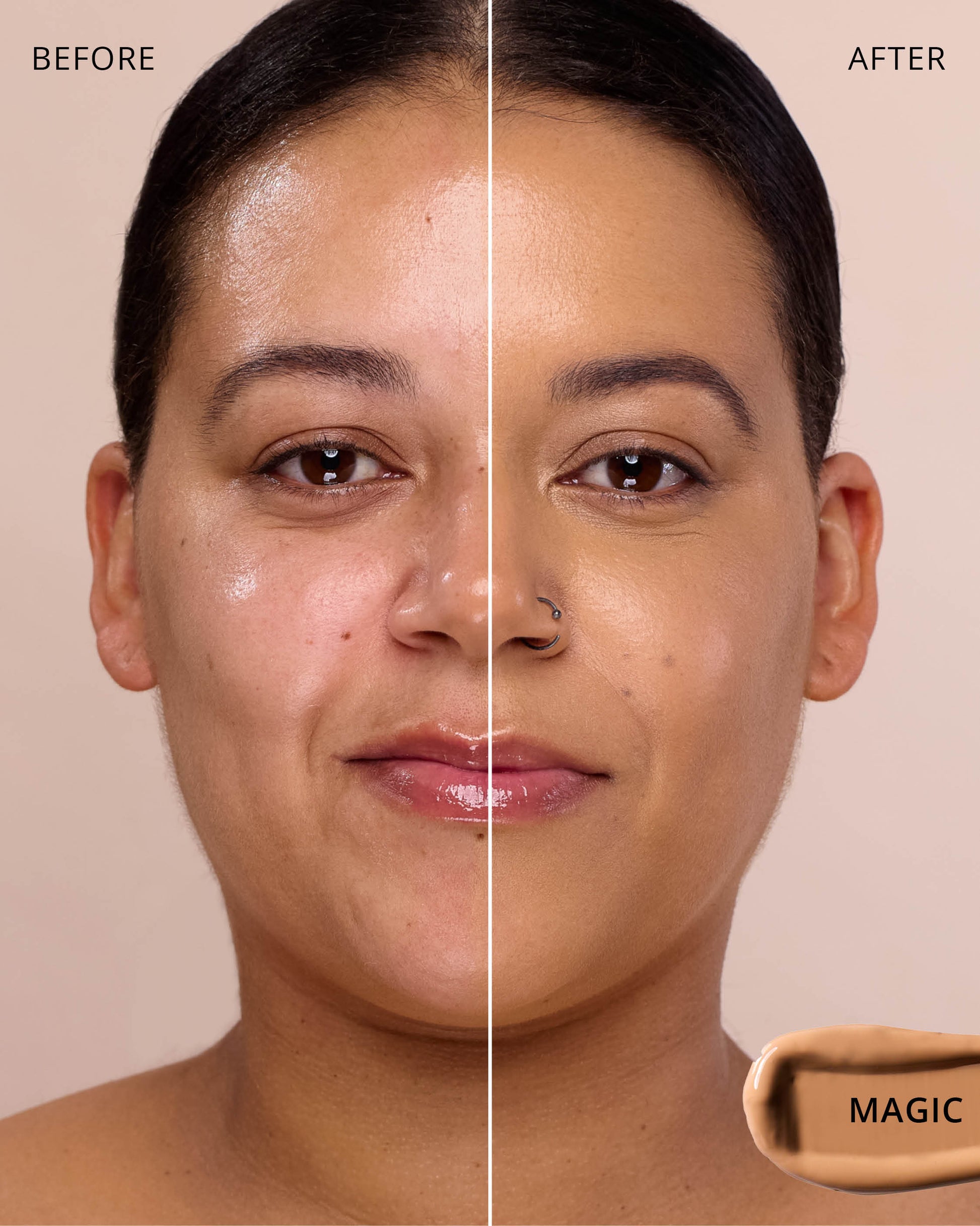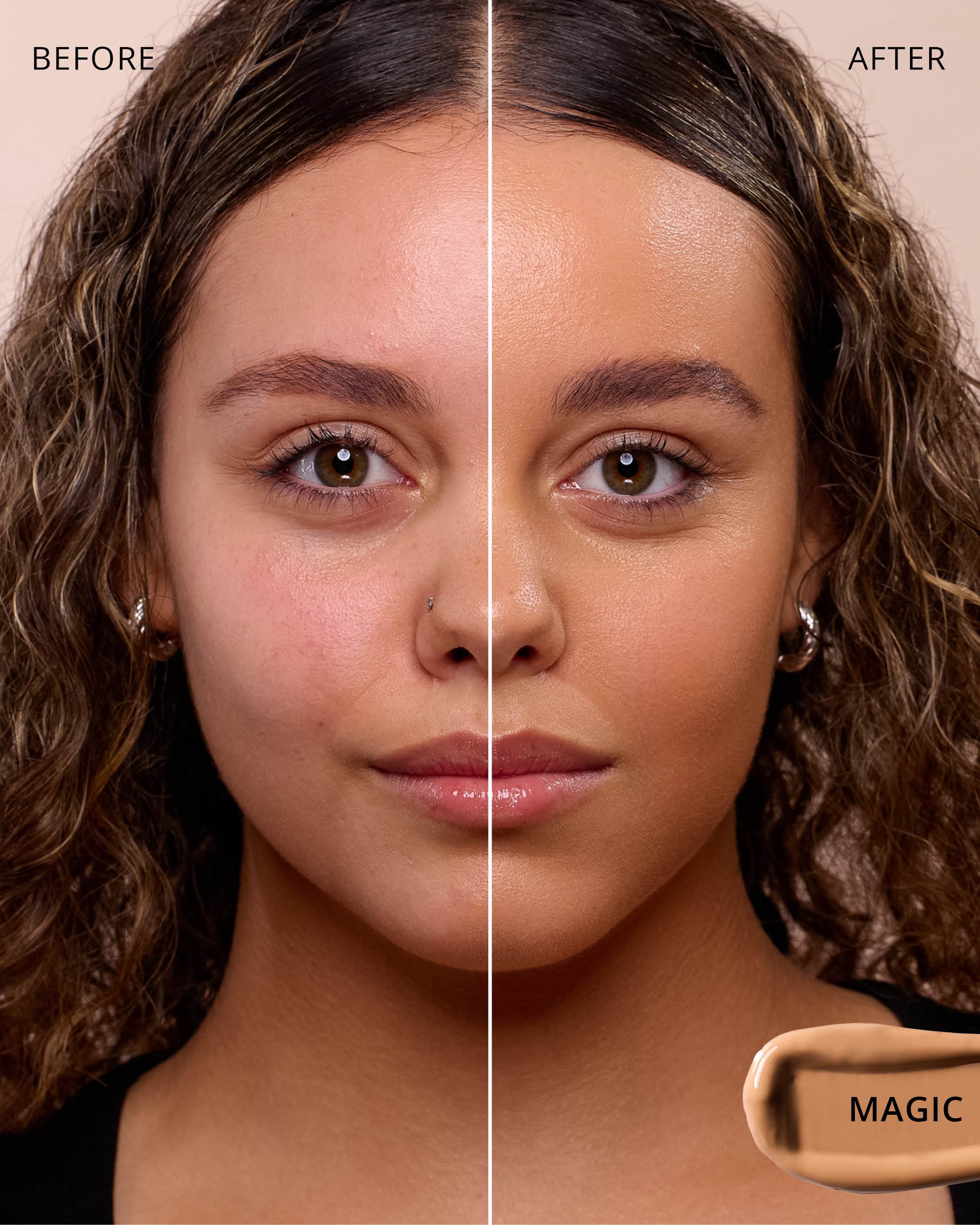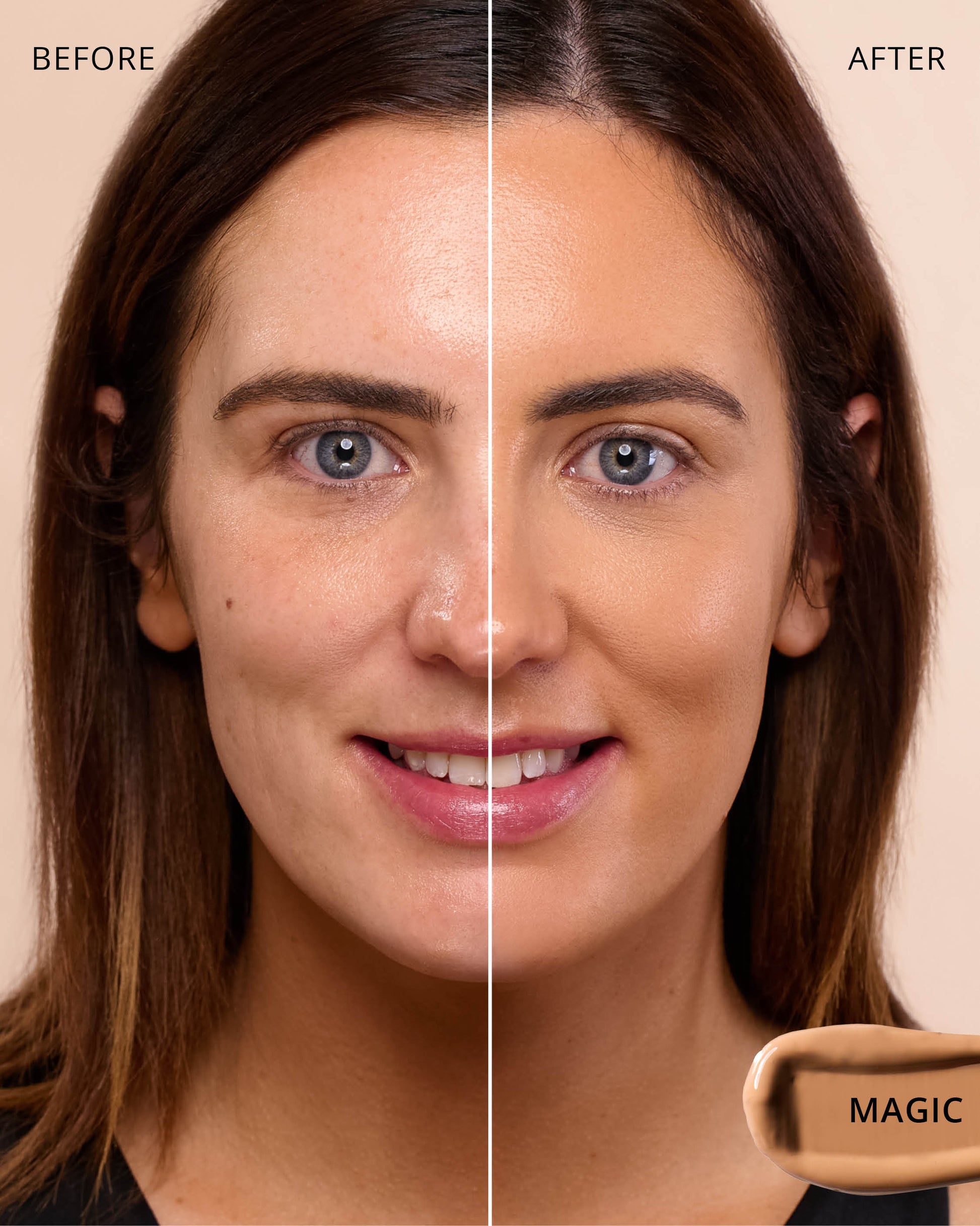 Magic : Water, Dimethicone, Butylene Glycol Dicaprylate/Dicaprate, Titanium Dioxide (CI 77891), Diphenylsiloxy Phenyl Trimethicone, Iron Oxides (CI 77492), Glycerin, Cetyl PEG/PPG-10/1 Dimethicone, Trisiloxane, Synthetic Fluorphlogopite, Butylene Glycol, 1,2-Hexanediol, Trimethylsiloxysilicate, Disteardimonium Hectorite, Iron Oxides (CI 77491), PEG-10 Dimethicone, Lactobacillus Ferment, Polyphenylsilsesquioxane, Magnesium Sulfate, Dimethicone Crosspolymer, Caprylyl Methicone, Iron Oxides (CI 77499), Lauroyl Lysine, Triethoxycaprylylsilane, Polyhydroxystearic Acid, Aluminum Hydroxide, Lecithin, Polyglyceryl-3 Polydimethylsiloxyethyl, Dimethicone, Ethylhexyl Palmitate, Isopropyl Myristate, Isostearic Acid, Chenopodium Quinoa Seed Extract, Trisodium Ethylenediamine Disuccinate, Polyglyceryl-3 Polyricinoleate, Hydrogenated Polyisobutene, Phenyl Trimethicone, Neopentyl Glycol Diethylhexanoate, Lauryl Polyglyceryl-3 Polydimethylsiloxyethyl, Dimethicone, Disodium Stearoyl Glutamate, Ethylhexylglycerin