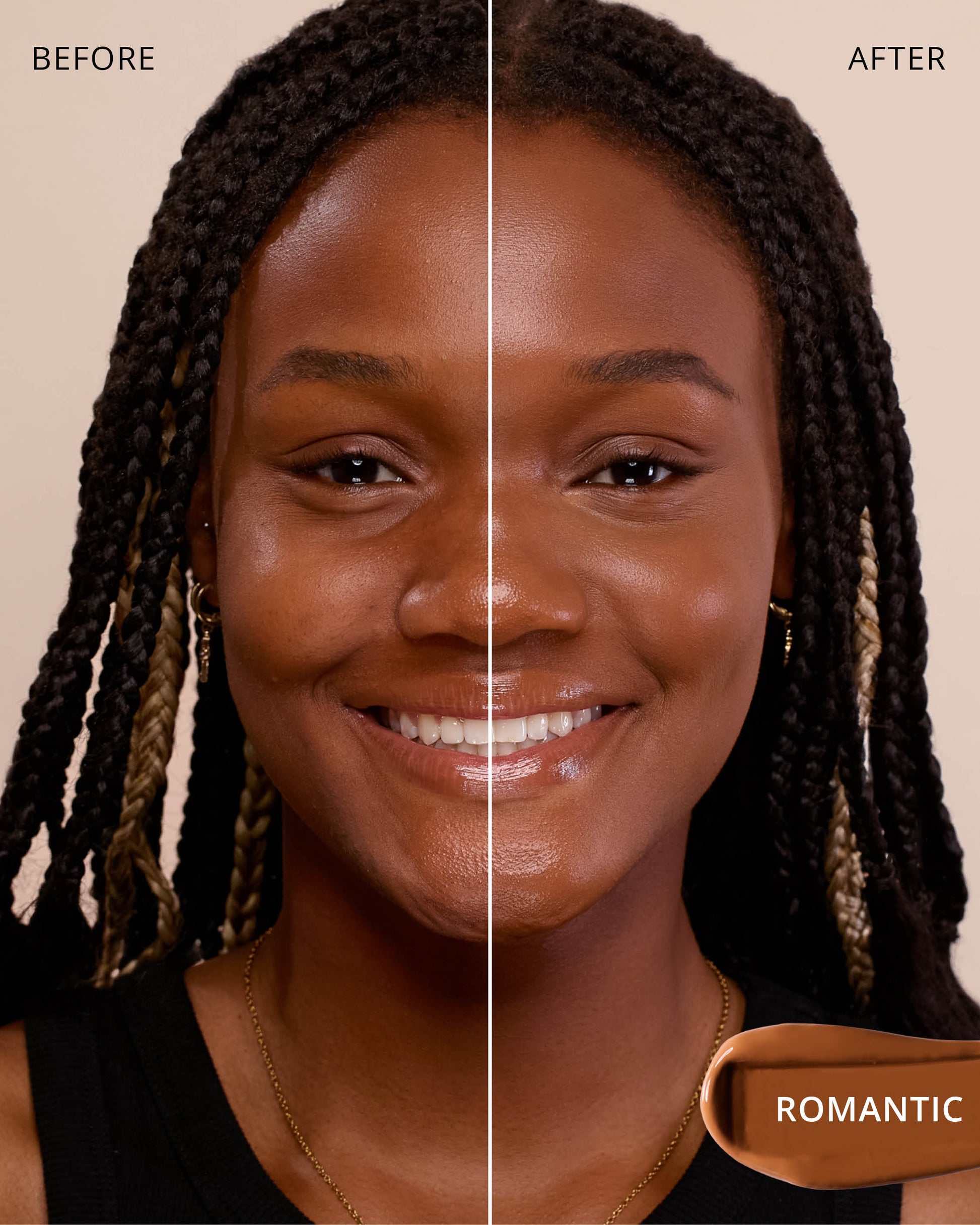 Romantic : Water, Dimethicone, Butylene Glycol Dicaprylate/Dicaprate, Iron Oxides (CI 77492), Diphenylsiloxy Phenyl Trimethicone, Glycerin, Iron Oxides (CI 77491), Cetyl PEG/PPG-10/1 Dimethicone, Trisiloxane, Butylene Glycol, 1,2-Hexanediol, Titanium Dioxide (CI 77891), Trimethylsiloxysilicate, Iron Oxides (CI 77499), Disteardimonium Hectorite, PEG-10 Dimethicone, Synthetic Fluorphlogopite, Lactobacillus Ferment, Polyphenylsilsesquioxane, Magnesium Sulfate, Dimethicone Crosspolymer, Caprylyl Methicone, Lauroyl Lysine, Triethoxycaprylylsilane, Polyhydroxystearic Acid, Hydrogenated Polyisobutene, Phenyl Trimethicone, Lecithin, Lauryl Polyglyceryl-3 Polydimethylsiloxyethyl, Dimethicone, Ethylhexyl Palmitate, Isopropyl Myristate, Isostearic Acid, Aluminum Hydroxide, Chenopodium Quinoa Seed Extract, Trisodium Ethylenediamine Disuccinate, Polyglyceryl-3 Polyricinoleate, Disodium Stearoyl Glutamate, Ethylhexylglycerin, Polyglyceryl-3 Polydimethylsiloxyethyl, Dimethicone, Neopentyl Glycol Diethylhexanoate