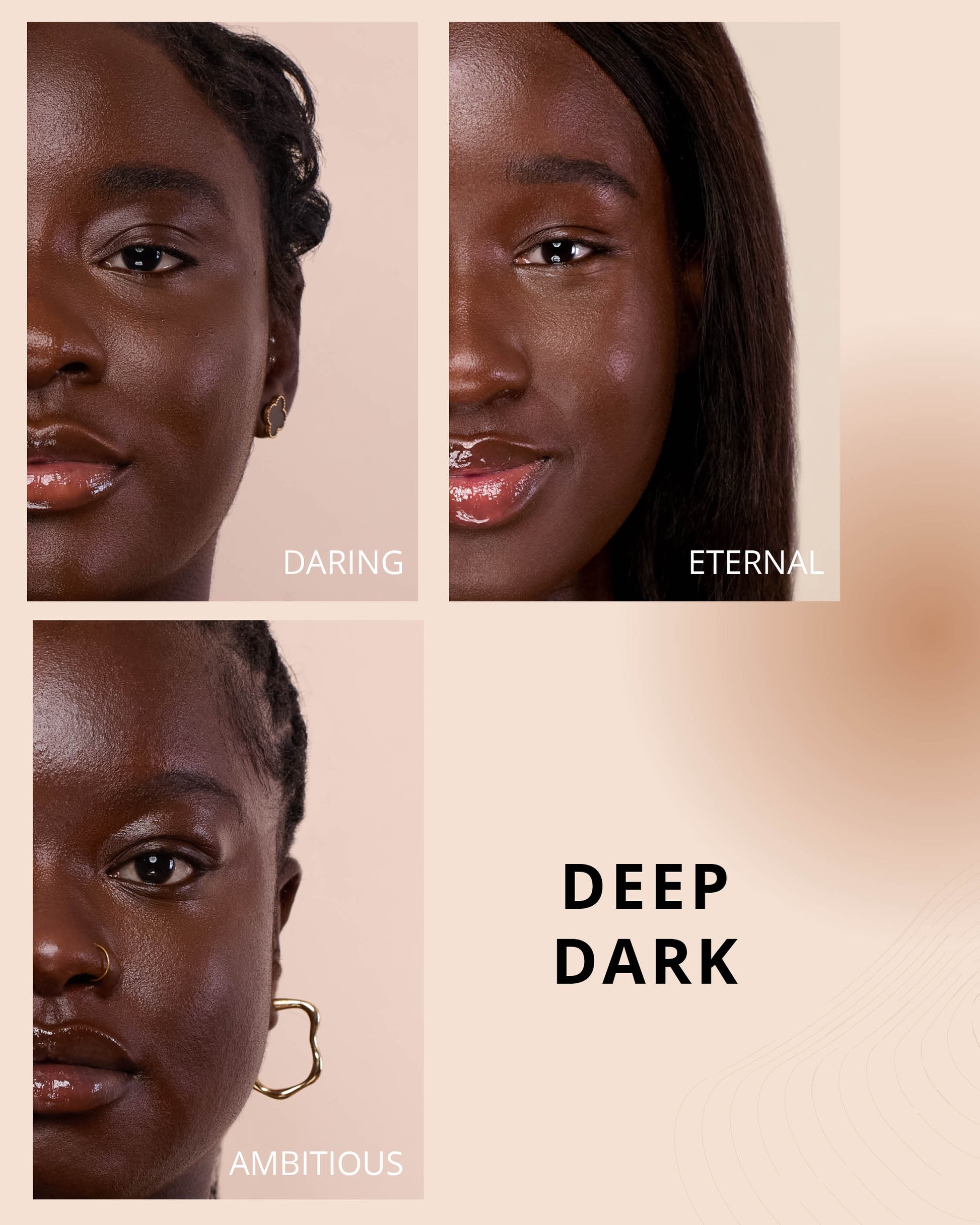 Daring : Water, Dimethicone, Butylene Glycol Dicaprylate/Dicaprate, Diphenylsiloxy Phenyl Trimethicone, Iron Oxides (CI 77499), Glycerin, Iron Oxides (CI 77492), Iron Oxides (CI 77491), Cetyl PEG/PPG-10/1 Dimethicone, Trisiloxane, Butylene Glycol, Synthetic Fluorphlogopite, 1,2-Hexanediol, Trimethylsiloxysilicate, Disteardimonium Hectorite, PEG-10 Dimethicone, Lactobacillus Ferment, Polyphenylsilsesquioxane, Magnesium Sulfate, Dimethicone Crosspolymer, Caprylyl Methicone, Lauroyl Lysine, Triethoxycaprylylsilane, Polyhydroxystearic Acid, Titanium Dioxide (CI 77891), Hydrogenated Polyisobutene, Lauryl Polyglyceryl-3 Polydimethylsiloxyethyl, Dimethicone, Lecithin, Ethylhexyl Palmitate, Isopropyl Myristate, Isostearic Acid, Chenopodium Quinoa Seed Extract, Trisodium Ethylenediamine Disuccinate, Polyglyceryl-3 Polyricinoleate, Aluminum Hydroxide, Phenyl Trimethicone, Ethylhexylglycerin, Polyglyceryl-3 Polydimethylsiloxyethyl, Dimethicone, Disodium Stearoyl Glutamate, Neopentyl Glycol Diethylhexanoate