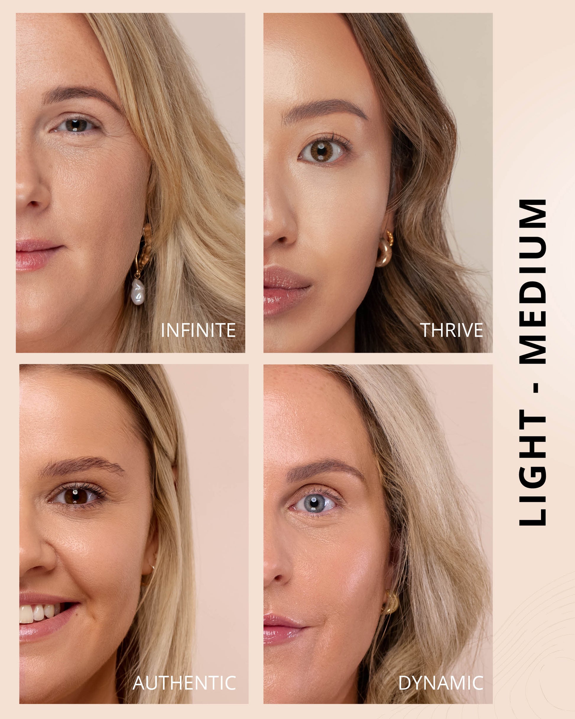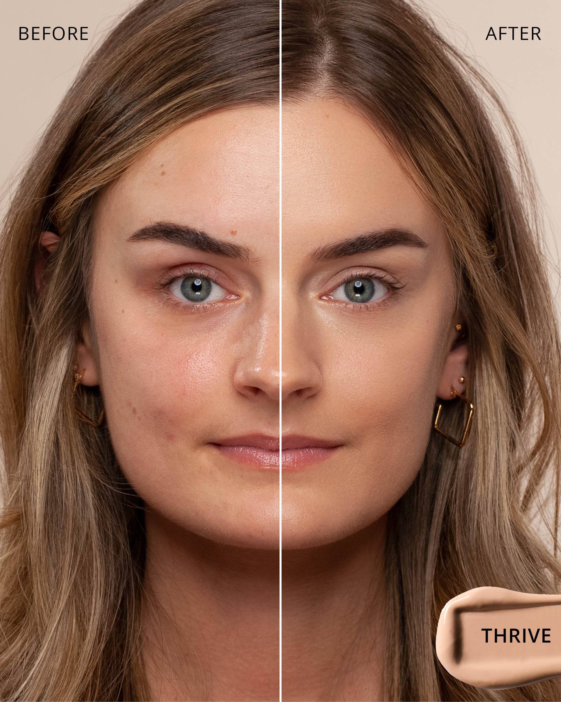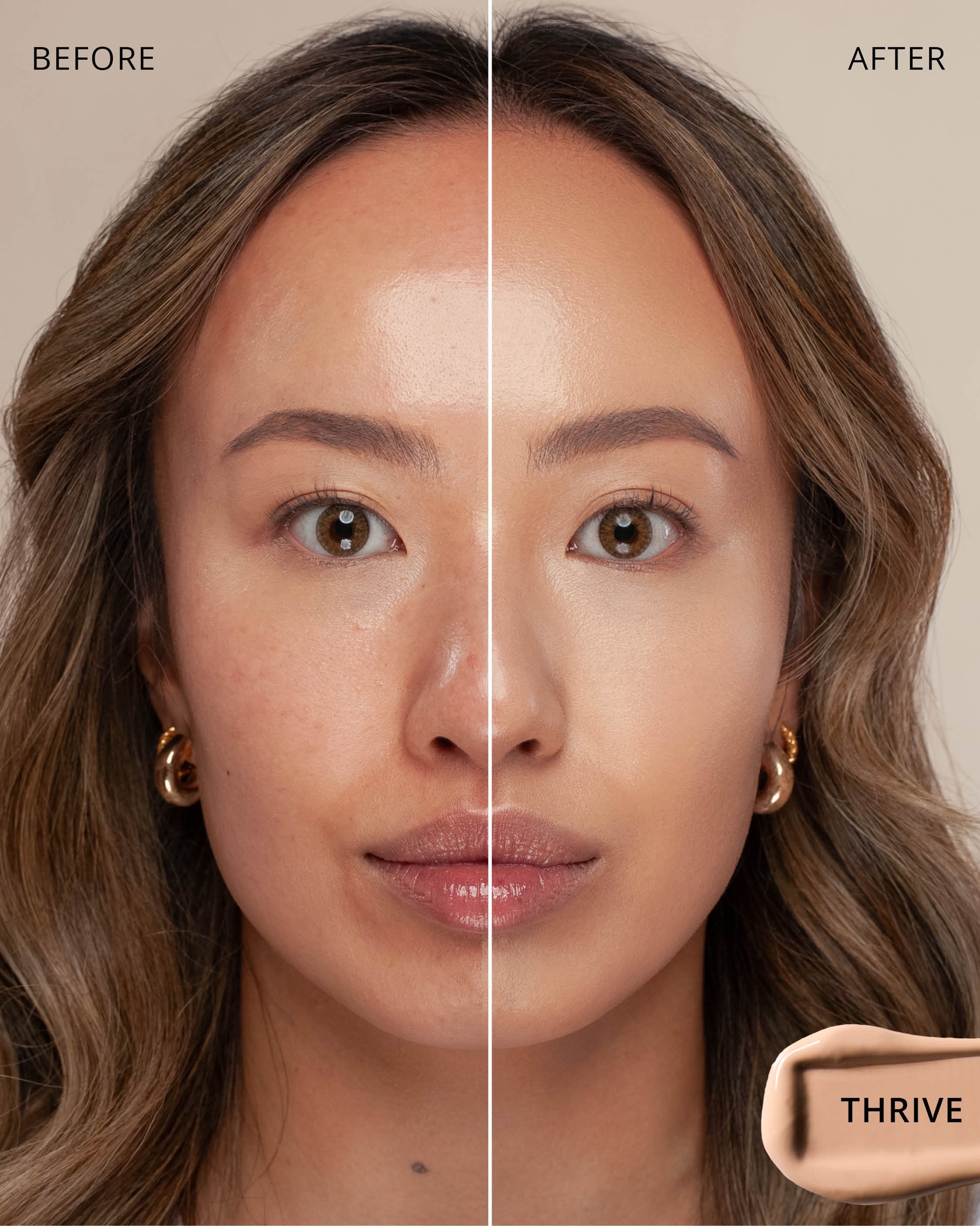 Thrive : Water, Dimethicone, Butylene Glycol Dicaprylate/Dicaprate, Titanium Dioxide (CI 77891), Diphenylsiloxy Phenyl Trimethicone, Glycerin, Synthetic Fluorphlogopite, Cetyl PEG/PPG-10/1 Dimethicone, Trisiloxane, Butylene Glycol, Iron Oxides (CI 77492), 1,2-Hexanediol, Trimethylsiloxysilicate, Disteardimonium Hectorite, PEG-10 Dimethicone, Lactobacillus Ferment, Polyphenylsilsesquioxane, Magnesium Sulfate, Dimethicone Crosspolymer, Caprylyl Methicone, Lauroyl Lysine, Iron Oxides (CI 77491), Triethoxycaprylylsilane, Aluminum Hydroxide, Iron Oxides (CI 77499), Polyhydroxystearic Acid, Phenyl Trimethicone, Hydrogenated Polyisobutene, Lecithin, Ethylhexyl Palmitate, Isopropyl Myristate, Isostearic Acid, Lauryl Polyglyceryl-3 Polydimethylsiloxyethyl, Dimethicone, Chenopodium Quinoa Seed Extract, Trisodium Ethylenediamine Disuccinate, Polyglyceryl-3 Polyricinoleate, Polyglyceryl-3 Polydimethylsiloxyethyl, Dimethicone, Disodium Stearoyl Glutamate, Neopentyl Glycol Diethylhexanoate, Ethylhexylglycerin