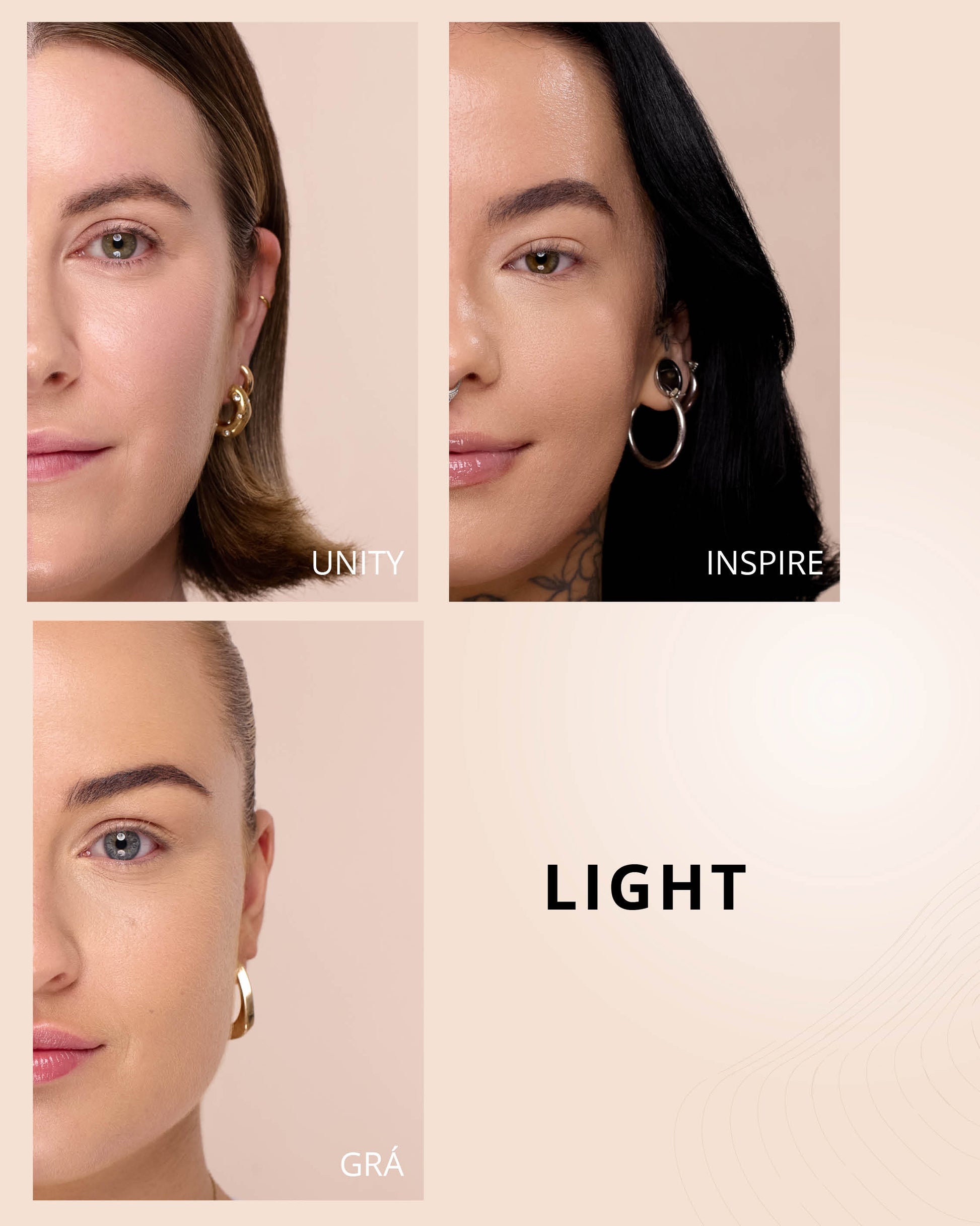 Grá : Water, Dimethicone, Butylene Glycol Dicaprylate/Dicaprate, Titanium Dioxide (CI 77891), Diphenylsiloxy Phenyl Trimethicone, Glycerin, Synthetic Fluorphlogopite, Cetyl PEG/PPG-10/1 Dimethicone, Trisiloxane, Iron Oxides (CI 77492), Butylene Glycol, 1,2-Hexanediol, Trimethylsiloxysilicate, Disteardimonium Hectorite, PEG-10 Dimethicone, Lactobacillus Ferment, Polyphenylsilsesquioxane, Magnesium Sulfate, Dimethicone Crosspolymer, Lauroyl Lysine, Iron Oxides (CI 77491), Triethoxycaprylylsilane, Aluminum Hydroxide, Polyhydroxystearic Acid, Phenyl Trimethicone, Hydrogenated Polyisobutene, Iron Oxides (CI 77499), Lecithin, Ethylhexyl Palmitate, Isopropyl Myristate, Isostearic Acid, Lauryl Polyglyceryl-3 Polydimethylsiloxyethyl, Dimethicone, Chenopodium Quinoa Seed Extract, Polyglyceryl-3 Polydimethylsiloxyethyl, Dimethicone, Trisodium Ethylenediamine Disuccinate, Polyglyceryl-3 Polyricinoleate, Disodium Stearoyl Glutamate, Caprylyl Methicone, Neopentyl Glycol Diethylhexanoate, Ethylhexylglycerin