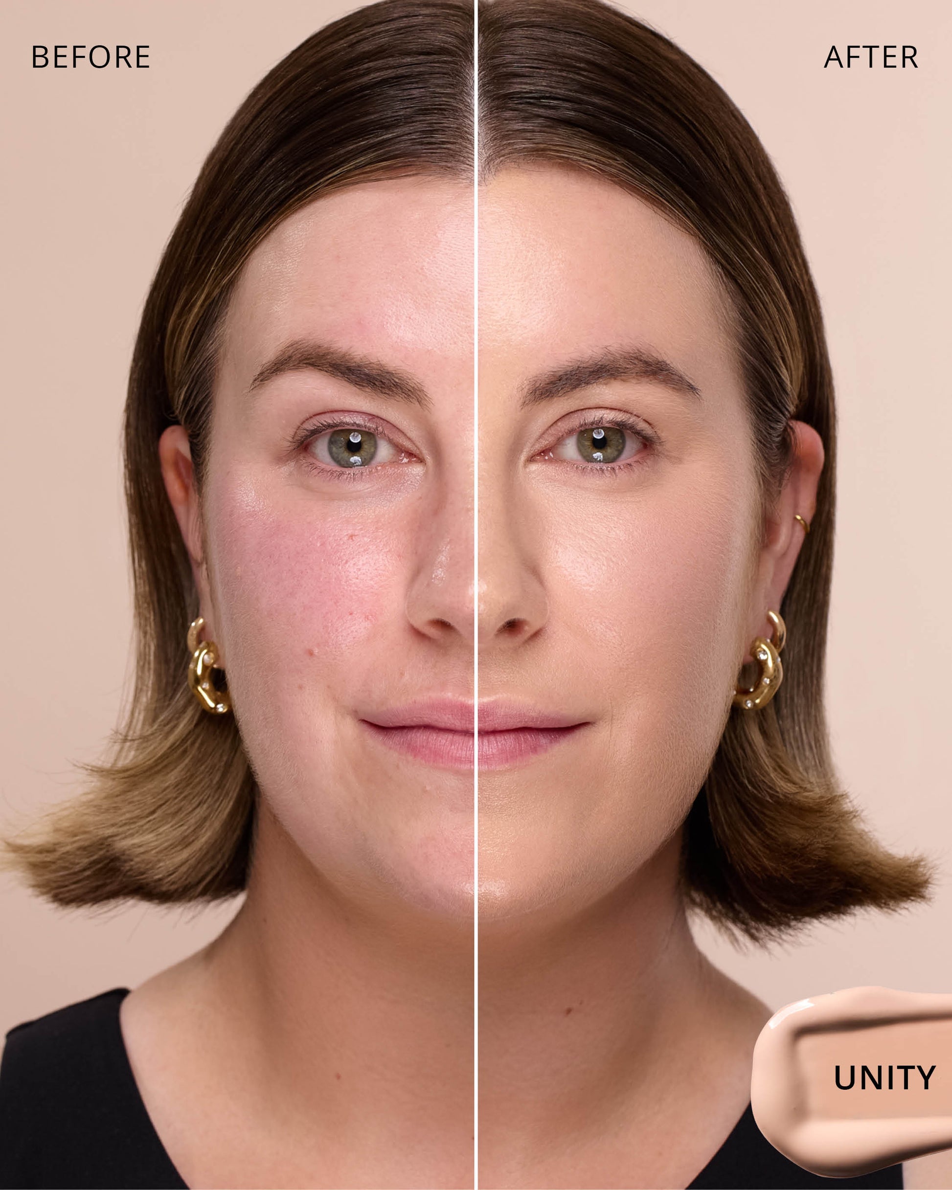 Unity : Water, Dimethicone, Butylene Glycol Dicaprylate/Dicaprate, Titanium Dioxide (CI 77891), Diphenylsiloxy Phenyl Trimethicone, Glycerin, Synthetic Fluorphlogopite, Cetyl PEG/PPG-10/1 Dimethicone, Trisiloxane, Butylene Glycol, 1,2-Hexanediol, Iron Oxides (CI 77492), Trimethylsiloxysilicate, Disteardimonium Hectorite, PEG-10 Dimethicone, Lactobacillus Ferment, Polyphenylsilsesquioxane, Magnesium Sulfate, Dimethicone Crosspolymer, Iron Oxides (CI 77491), Lauroyl Lysine, Triethoxycaprylylsilane, Aluminum Hydroxide, Polyhydroxystearic Acid, Iron Oxides (CI 77499), Lecithin, Polyglyceryl-3 Polydimethylsiloxyethyl, Dimethicone, Ethylhexyl Palmitate, Isopropyl Myristate, Isostearic Acid, Chenopodium Quinoa Seed Extract, Trisodium Ethylenediamine Disuccinate, Polyglyceryl-3 Polyricinoleate, Hydrogenated Polyisobutene, Phenyl Trimethicone, Lauryl Polyglyceryl-3 Polydimethylsiloxyethyl, Dimethicone, Caprylyl Methicone, Disodium Stearoyl Glutamate, Neopentyl Glycol Diethylhexanoate, Ethylhexylglycerin