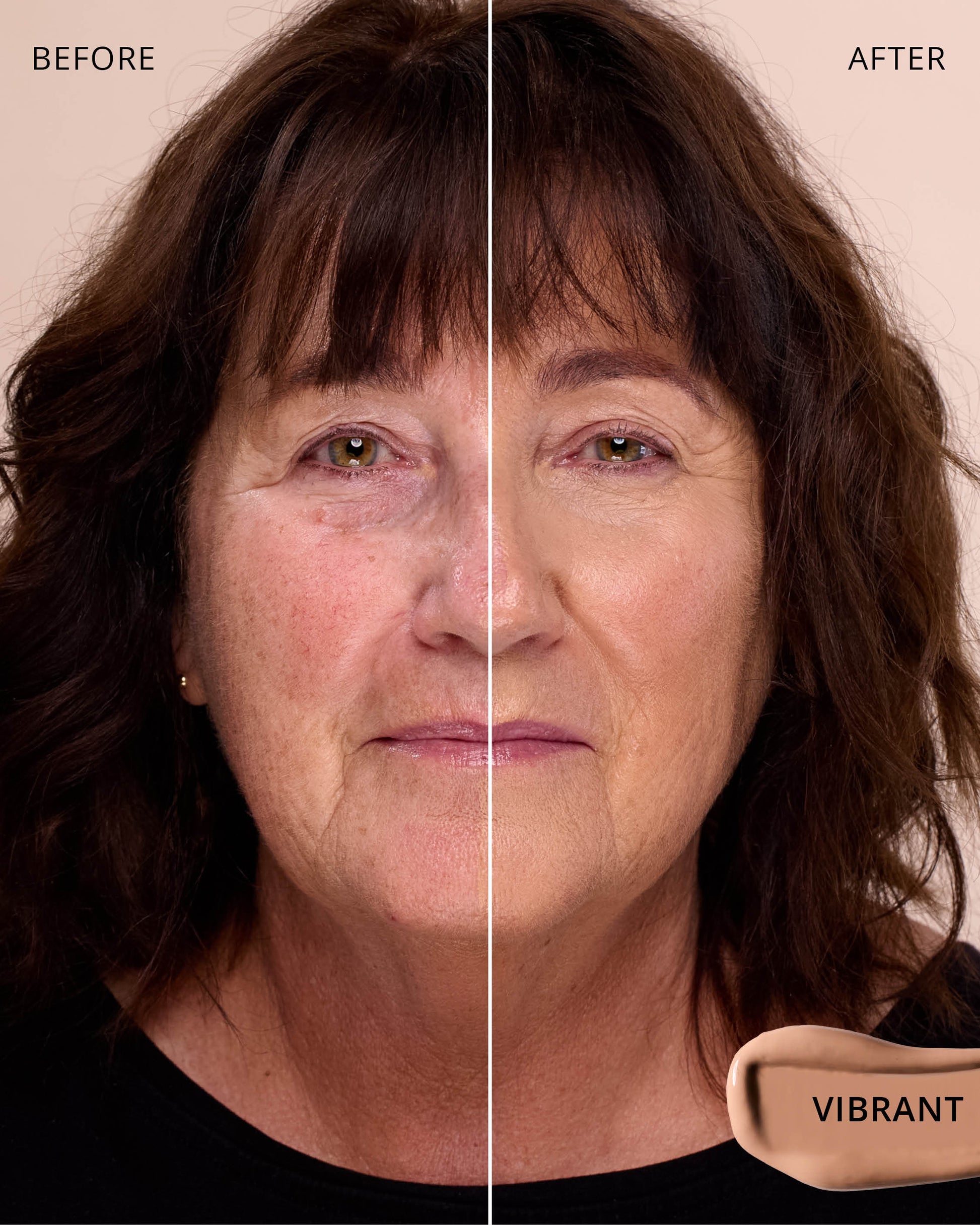 Vibrant : Water, Dimethicone, Butylene Glycol Dicaprylate/Dicaprate, Titanium Dioxide (CI 77891), Diphenylsiloxy Phenyl Trimethicone, Glycerin, Cetyl PEG/PPG-10/1 Dimethicone, Synthetic Fluorphlogopite, Iron Oxides (CI 77492), Trisiloxane, Butylene Glycol, 1,2-Hexanediol, Trimethylsiloxysilicate, Disteardimonium Hectorite, Iron Oxides (CI 77491), PEG-10 Dimethicone, Lactobacillus Ferment, Polyphenylsilsesquioxane, Magnesium Sulfate, Dimethicone Crosspolymer, Iron Oxides (CI 77499), Caprylyl Methicone, Lauroyl Lysine, Triethoxycaprylylsilane, Aluminum Hydroxide, Polyhydroxystearic Acid, Lecithin, Hydrogenated Polyisobutene, Ethylhexyl Palmitate, Isopropyl Myristate, Isostearic Acid, Phenyl Trimethicone, Chenopodium Quinoa Seed Extract, Trisodium Ethylenediamine Disuccinate, Polyglyceryl-3 Polyricinoleate, Lauryl Polyglyceryl-3 Polydimethylsiloxyethyl, Dimethicone, Disodium Stearoyl Glutamate, Polyglyceryl-3 Polydimethylsiloxyethyl, Dimethicone, Ethylhexylglycerin, Neopentyl Glycol Diethylhexanoate